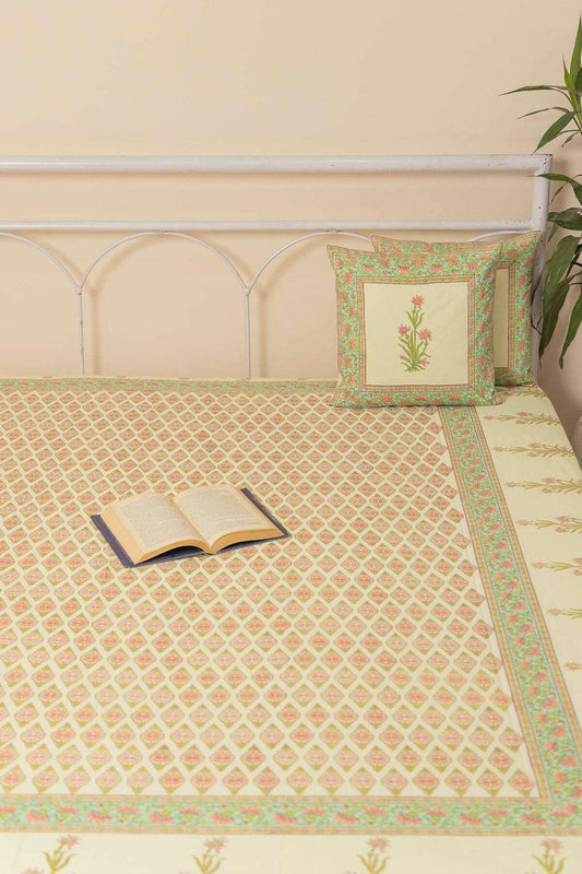 Introducing our luxurious bed linen collection, where comfort meets style most exquisitely. Explore our range of bed sheets, quilts, dohars, bed covers, and cushions, all designed to transform your bedroom into a haven of tranquility and beauty.