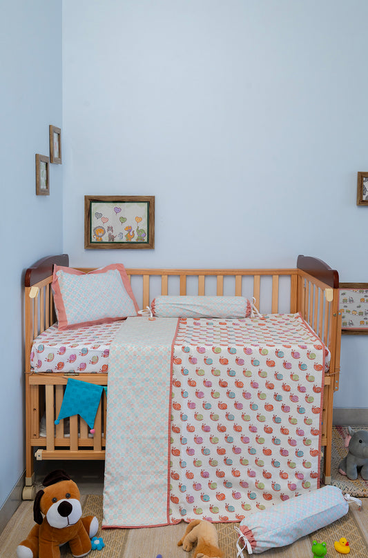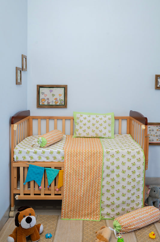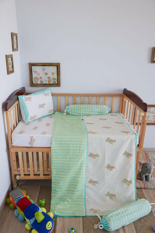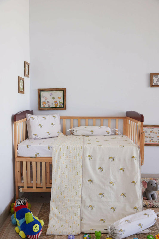 For your bundle of joy, we have designed cuddly and cozy cot sets in fun baby prints comprising of an overlay sheet, one pillowcase, and two bolster covers.