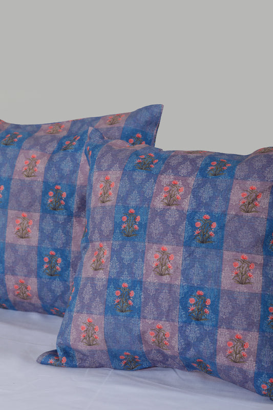 Manganese Blue Printed Cushion Cover