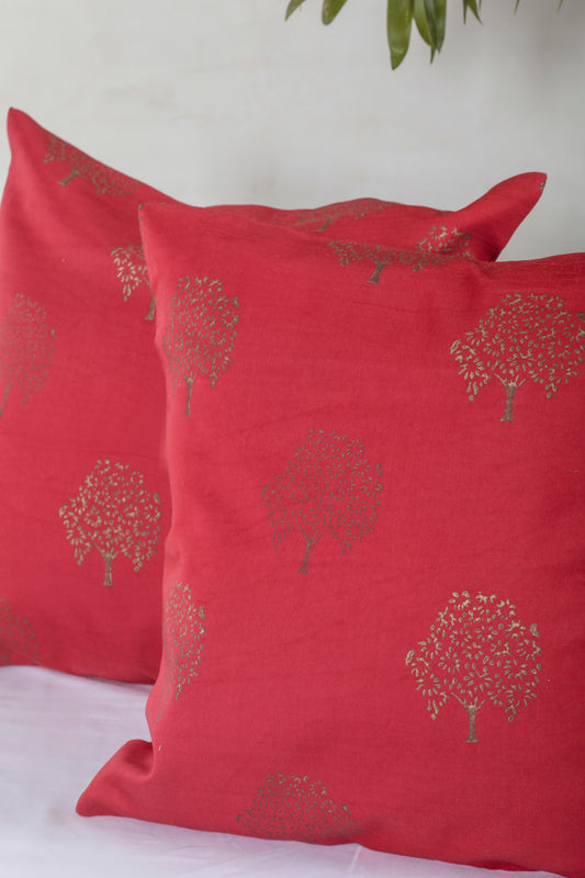 Maroon Tree Cushion Cover