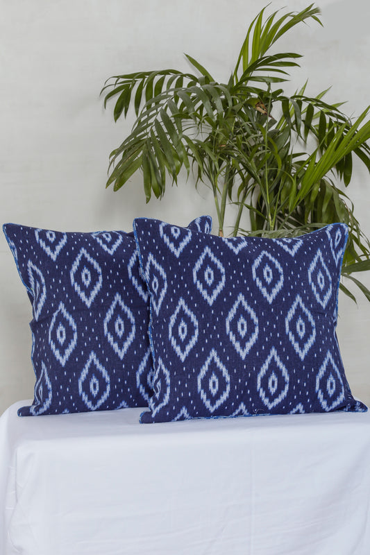 Blue Cotton Ikat Cushion Cover