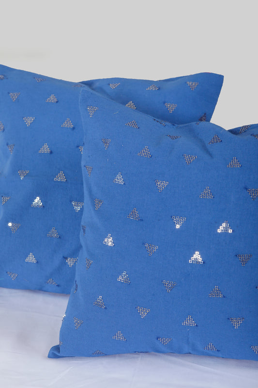 Blue Sequins Cotton Cushion Cover