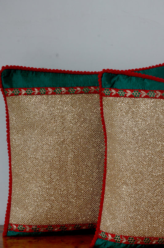 Green Sheen Silver Cushion Cover