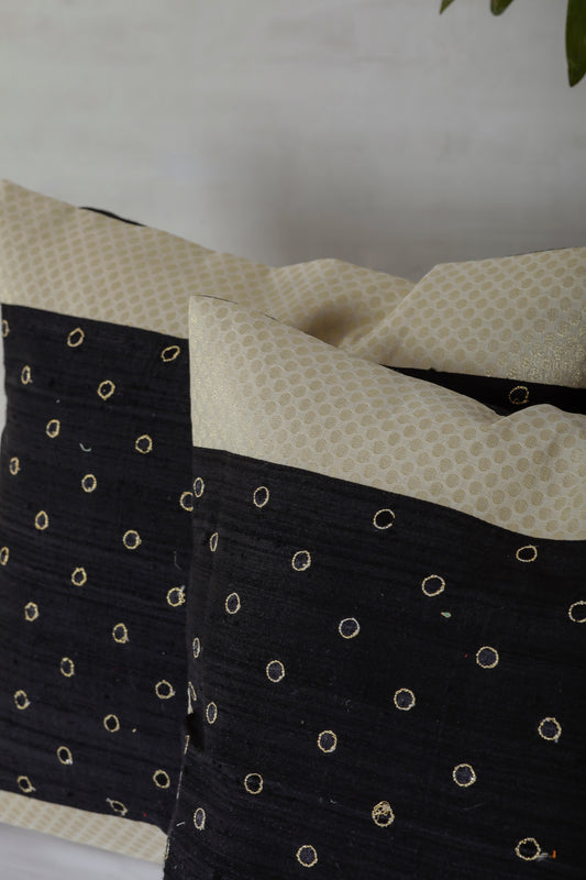 Black & Glow Banarasi Cushion Cover