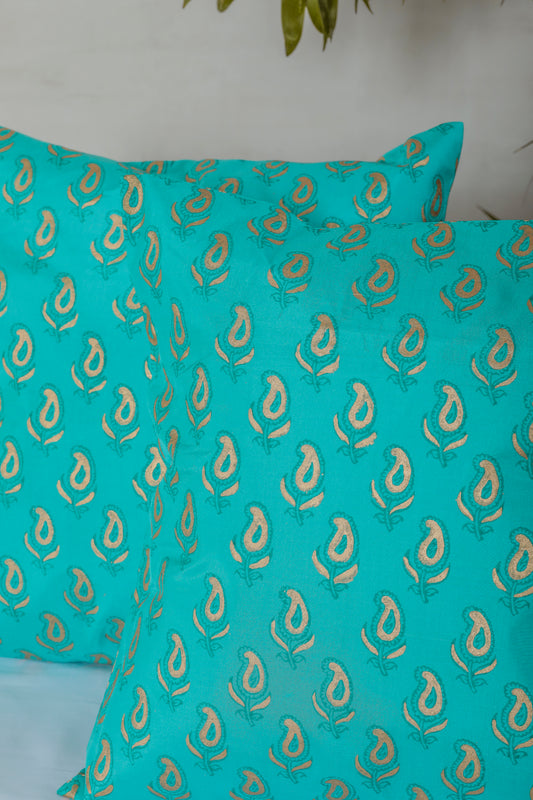 Shiny Green Paisley Cushion Cover