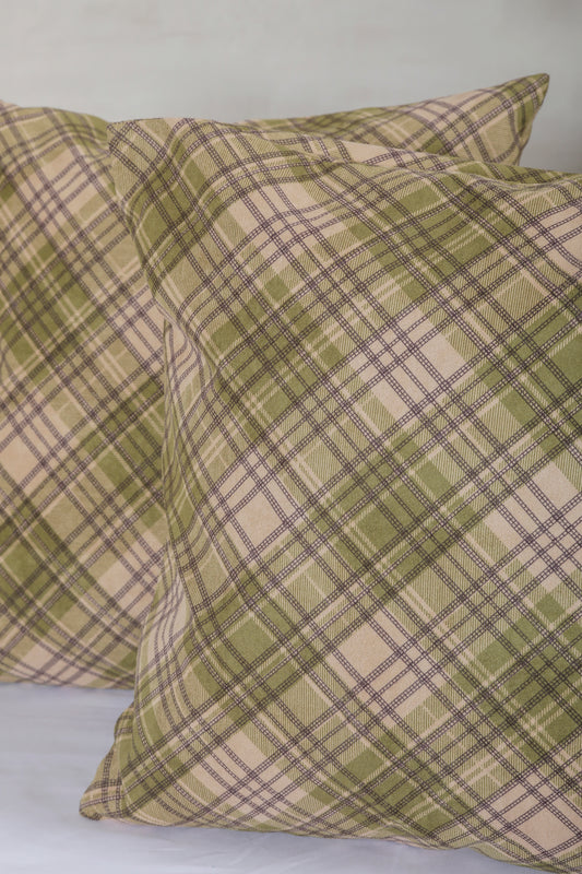 Green Checks Cotton Cushion Cover