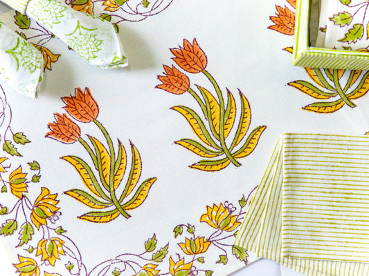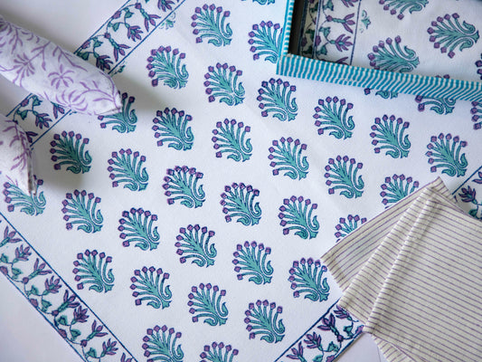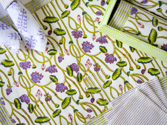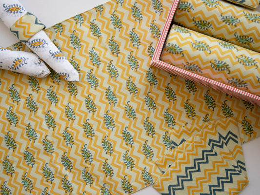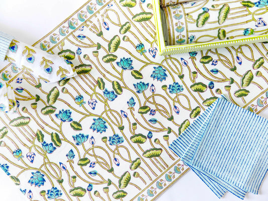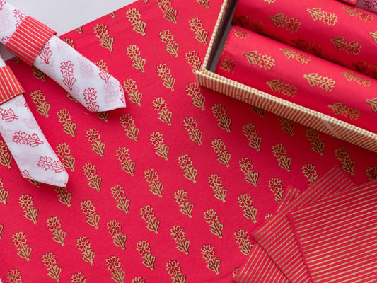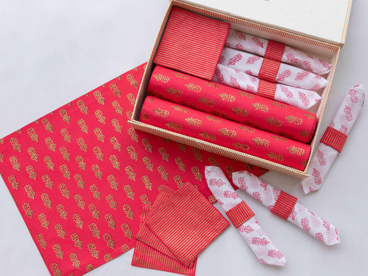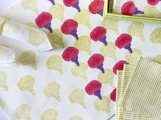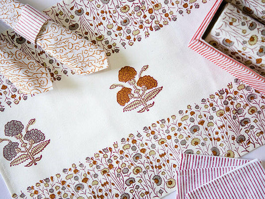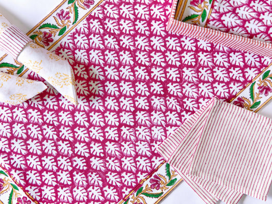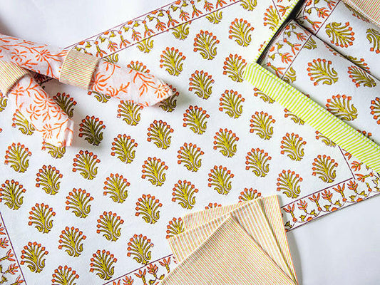 Introducing our exquisite Hand Block Table Mat Sets with napkins and runners, coasters and napkin rings, a perfect addition to elevate your dining experience. Indulge in the timeless elegance of our hand-block table linen, a true embodiment of refined home decor. wedding favor, our mat sets are sure to delight and impress.