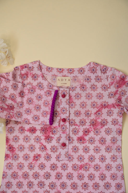 Pink Owl Block Print Kurta Set