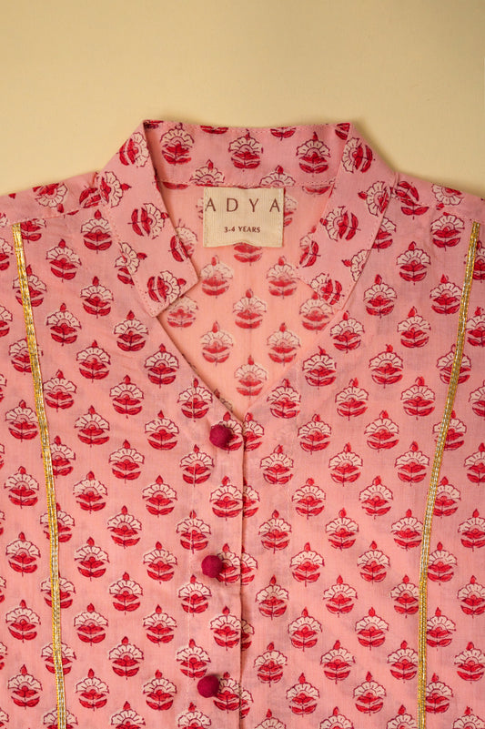 Pink Snail Block Print Kurta Set