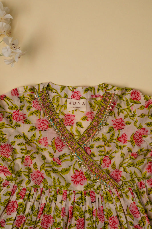 Green Floral Girl Kaftan Set