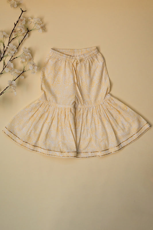 Light Yellow & Pink Floral Kurta Sharara Set