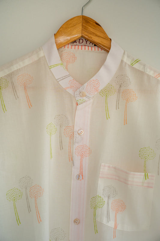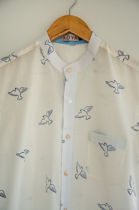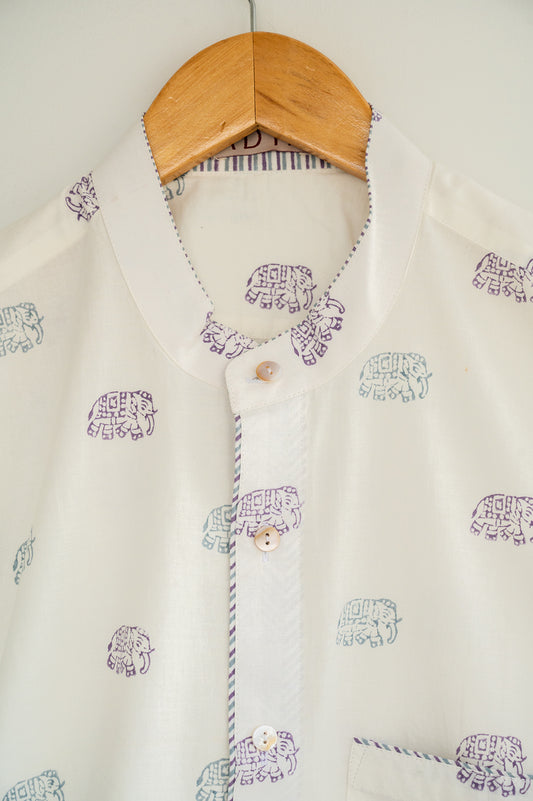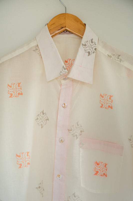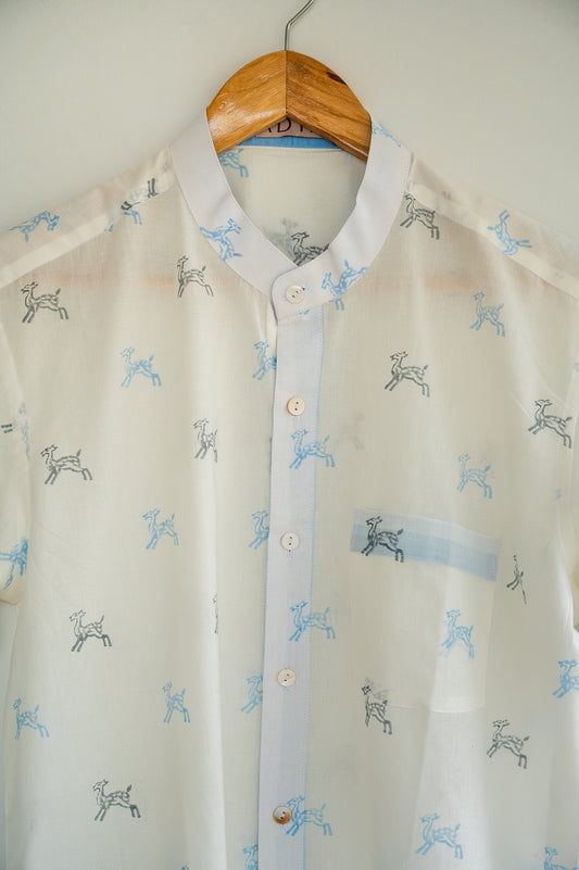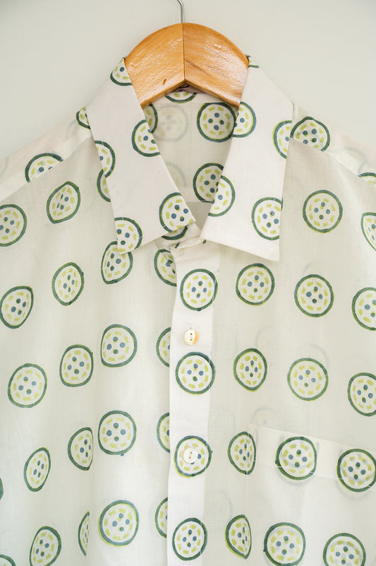 White Hand Block Printed Men's Shirt