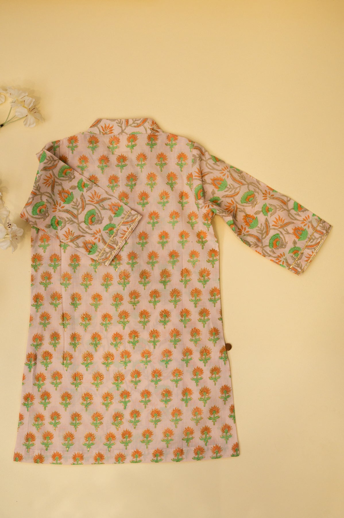 Dress your little one in our stylish boy's ethnic kurta, designed for comfort and versatility. Crafted from soft fabric, this kurta pairs effortlessly with any pants or denim, making it perfect for festive occasions.