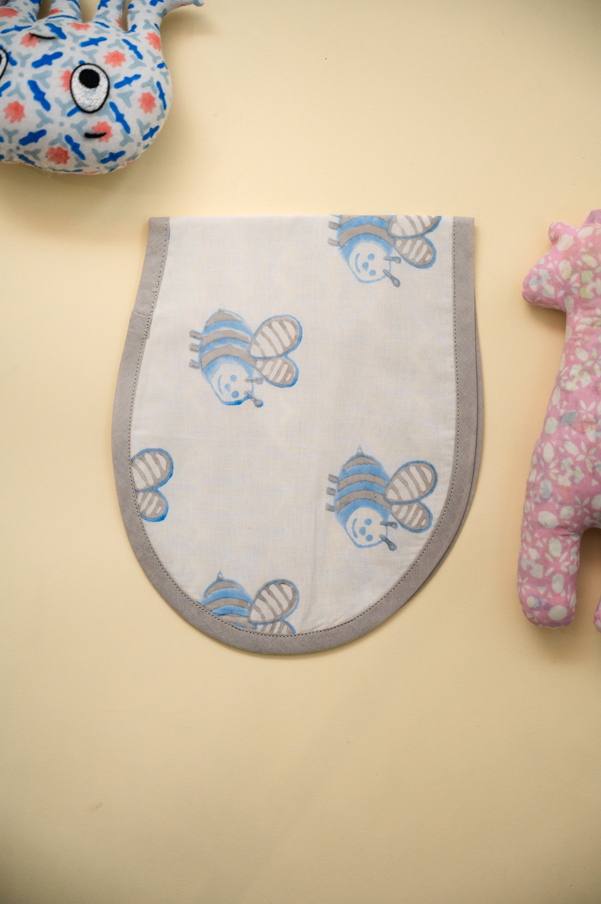 Blue Honeybee Cotton Reversible Burp Cloth- Pack of 2