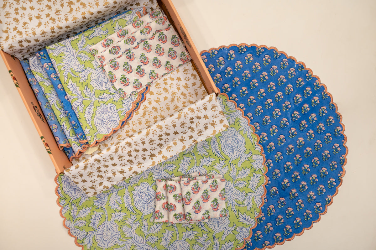 Browse through our collection now & discover the perfect mat set that reflects your unique personality. This Blue Scalloped Festive Table Mat Set is specially curated to evoke the delight of a perfect dining experience. It’s the ideal gifting option for Diwali, making celebrations even more special.