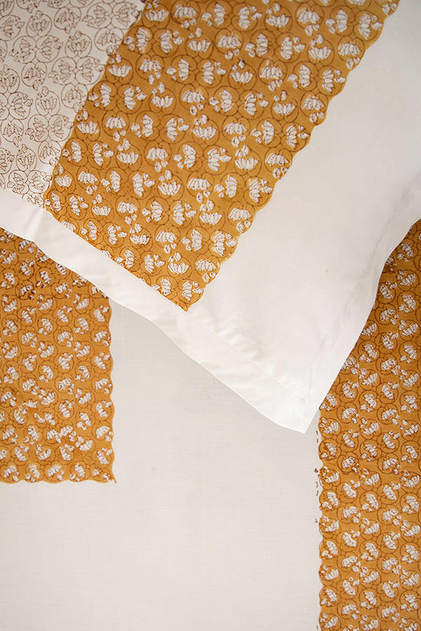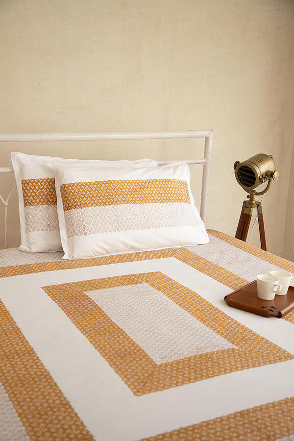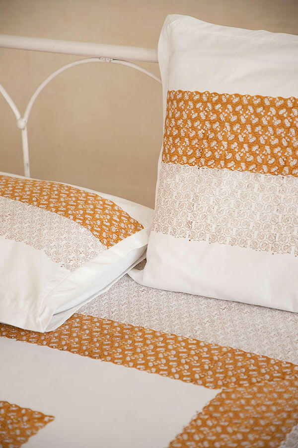 Experience the luxurious comfort of our 100% cotton bed sheet, beautifully hand-block printed with a variety of intricate designs. The bedsheet comes with matching pillow cases (18 IN X 28 IN).