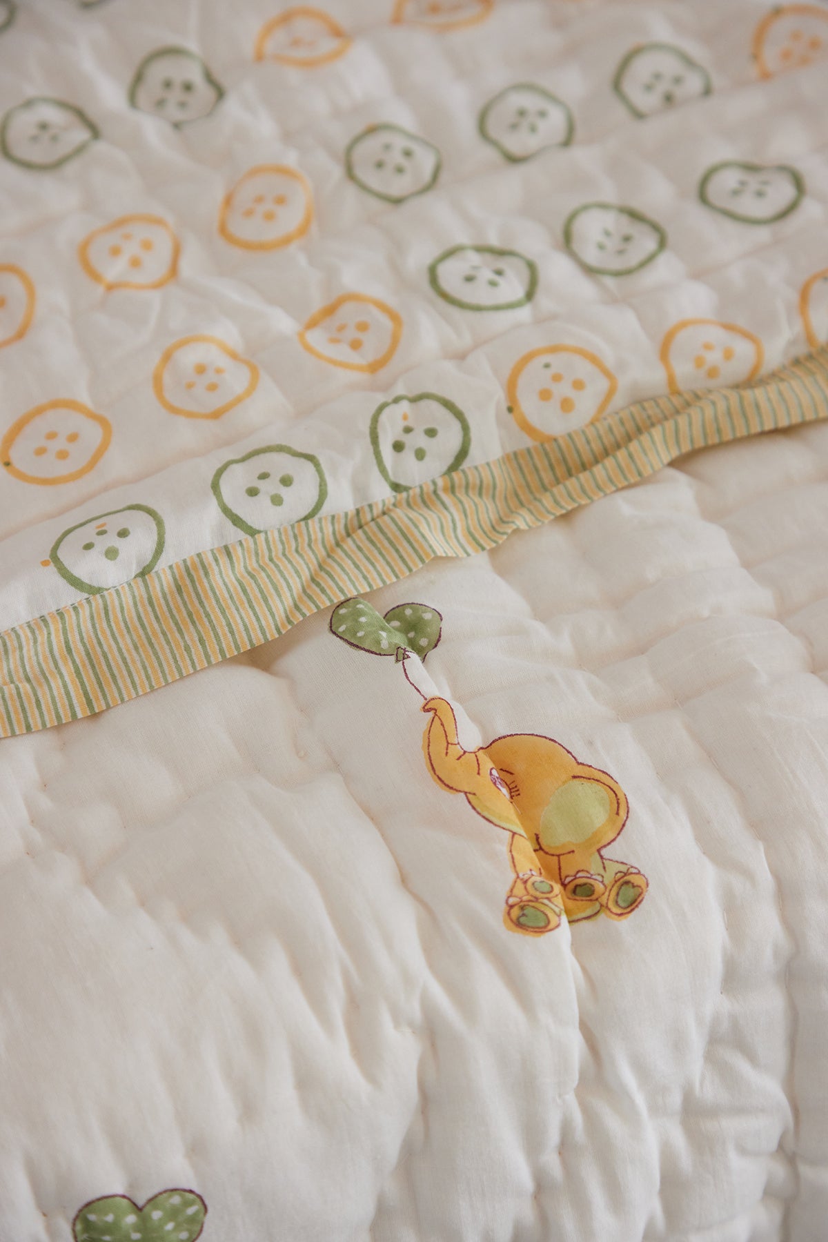 Embrace the magic of new beginnings with a touch of artistry and love. Envelop your little one in the cozy comfort of our hand-block printed soft quilt, crafted to bring joy and warmth.
