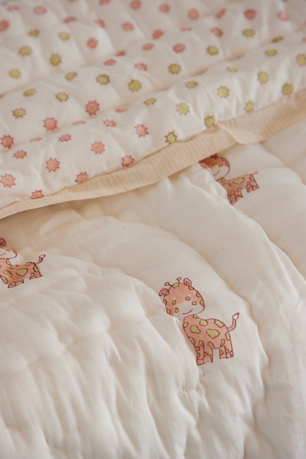 Embrace the magic of new beginnings with a touch of artistry and love. Envelop your little one in the cozy comfort of our hand-block printed soft quilt, crafted to bring joy and warmth.