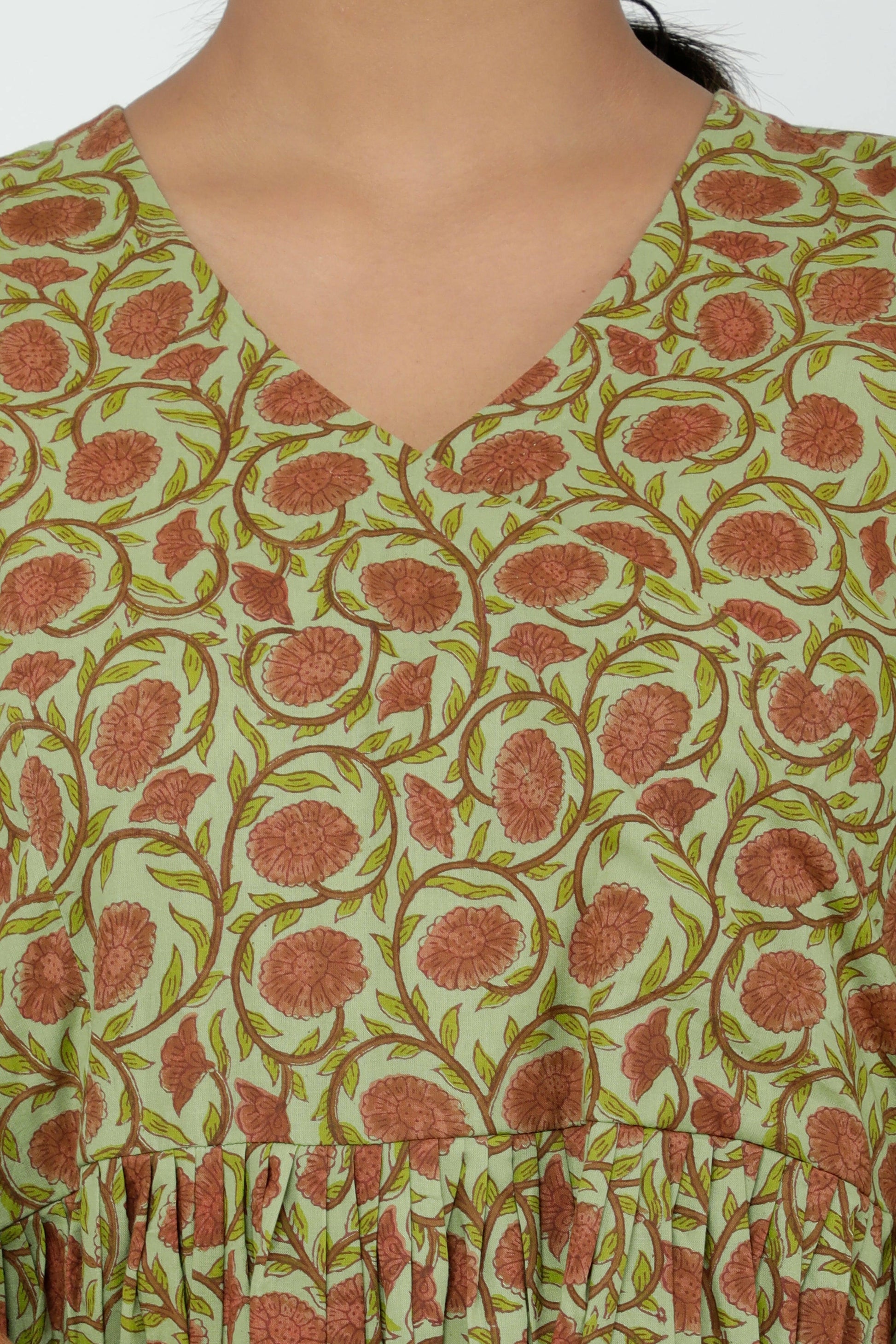 Green Cotton Printed Angrakha Short Kurti