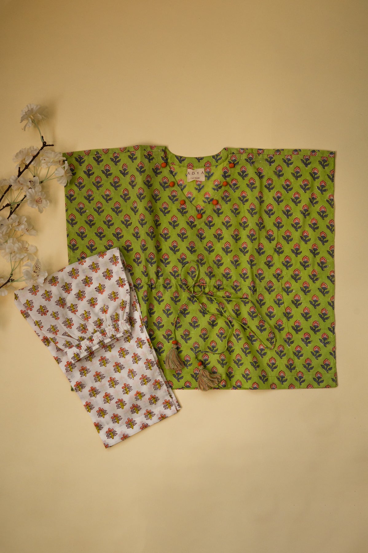 Celebrate the festivities in style with our charming girl’s Kaftan Set! Made from soft cotton and featuring unique block prints, this outfit combines comfort and elegance, ensuring your little one shines brightly on every occasion.