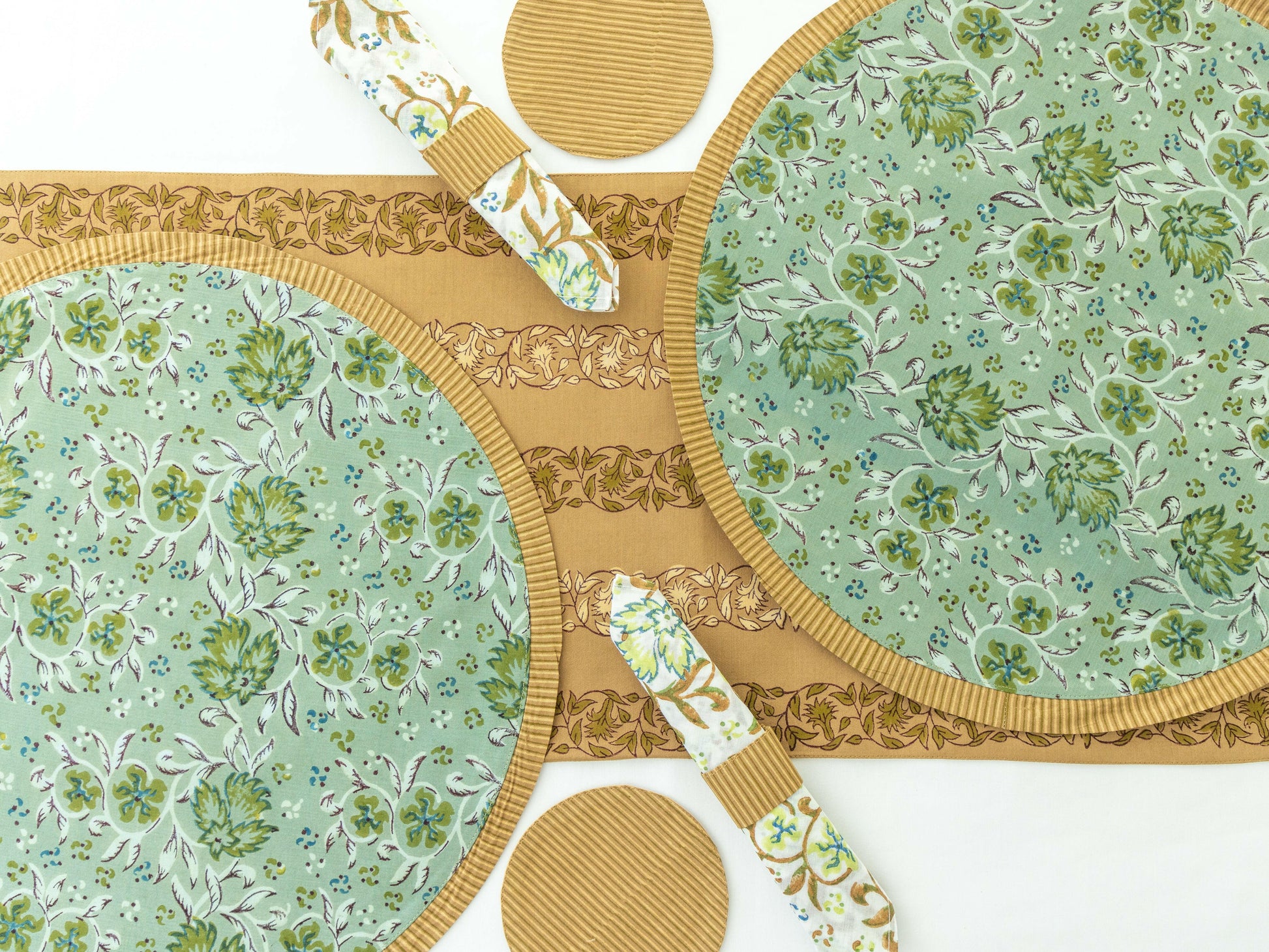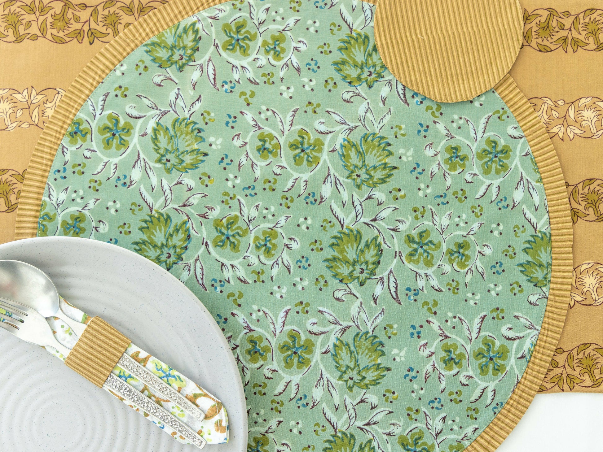 Browse through our collection now & discover the perfect mat set that reflects your unique personality. This Round Green & Gold Table Set is specially curated to evoke the delight of a perfect dining experience.