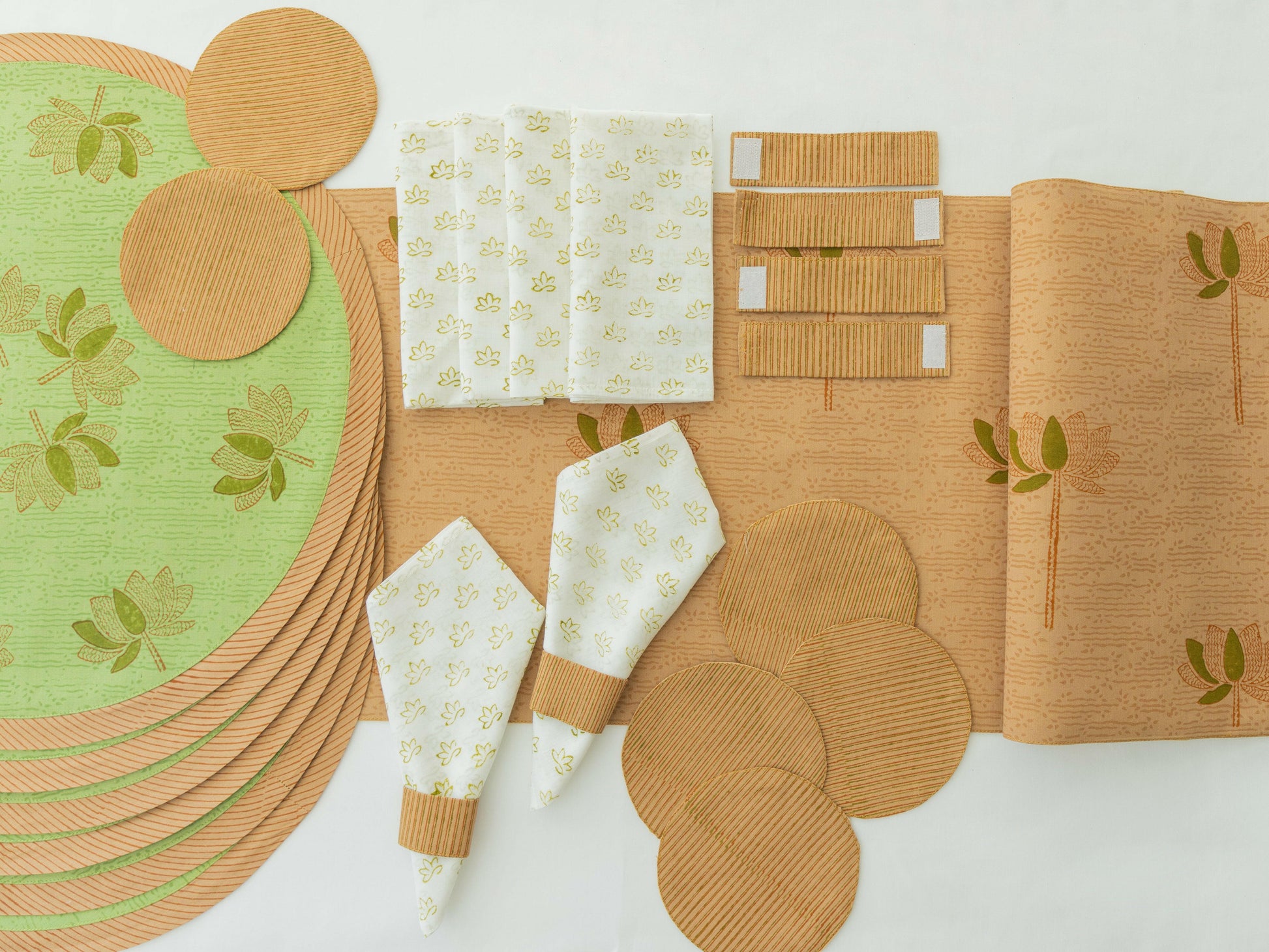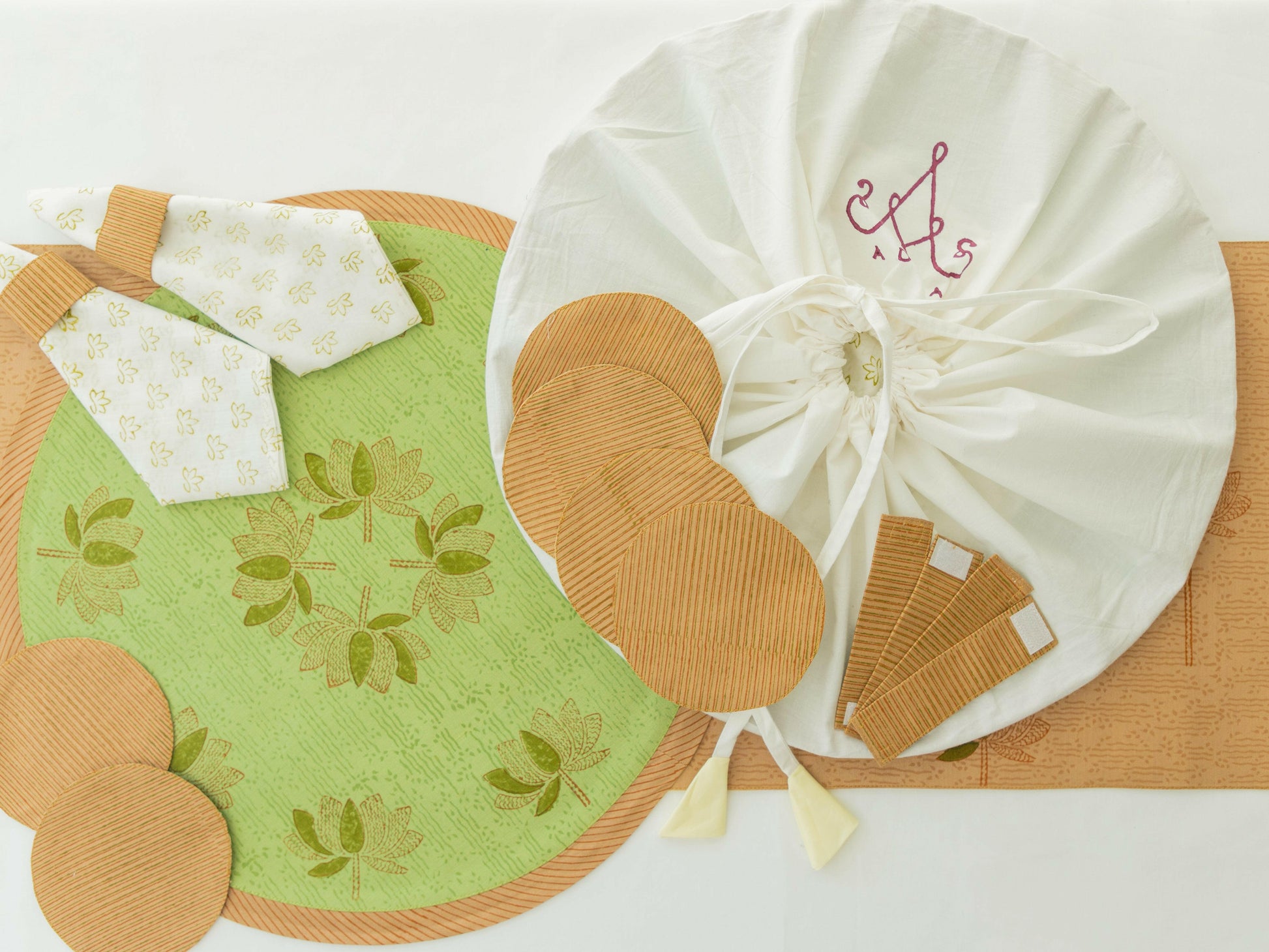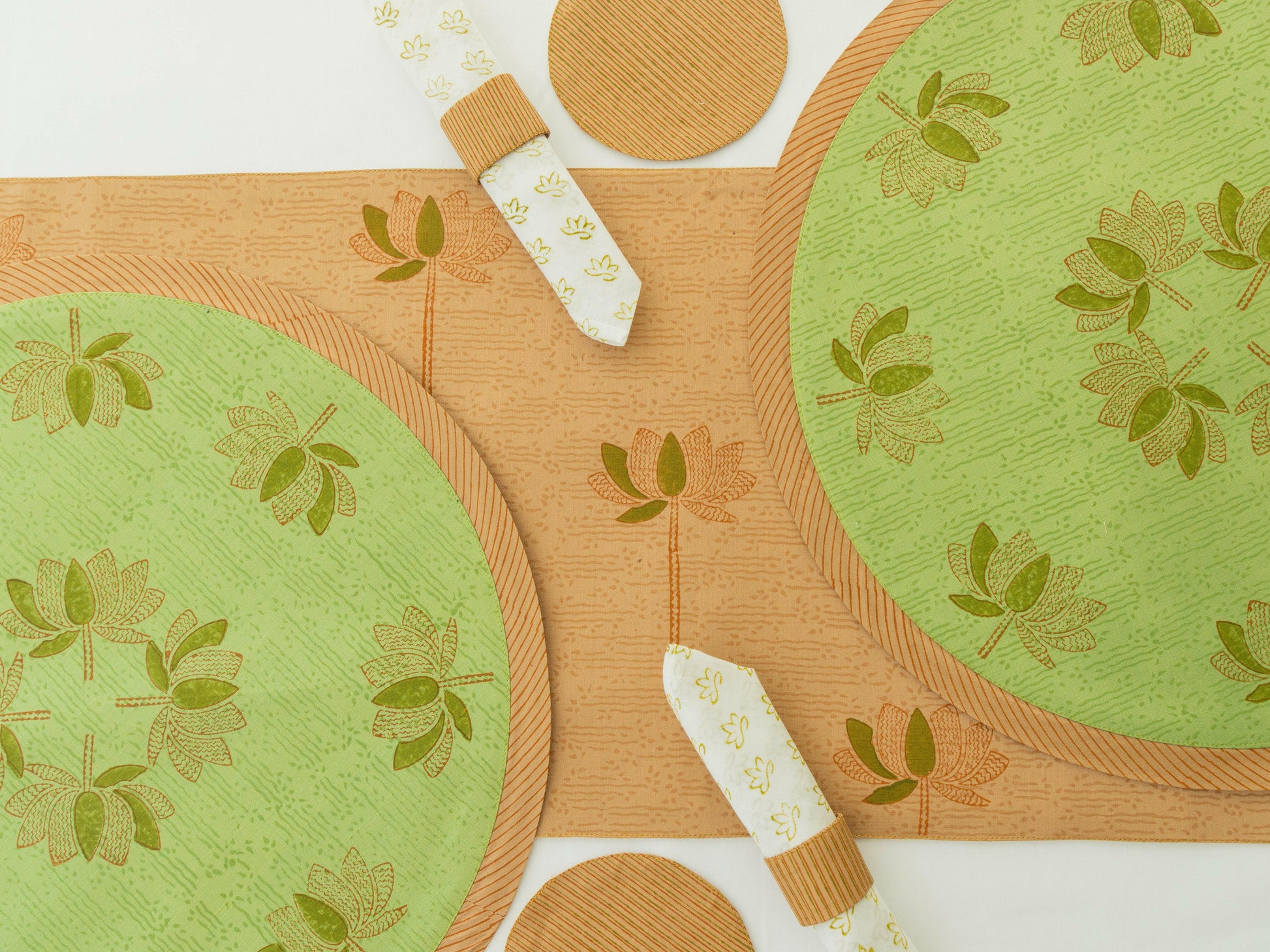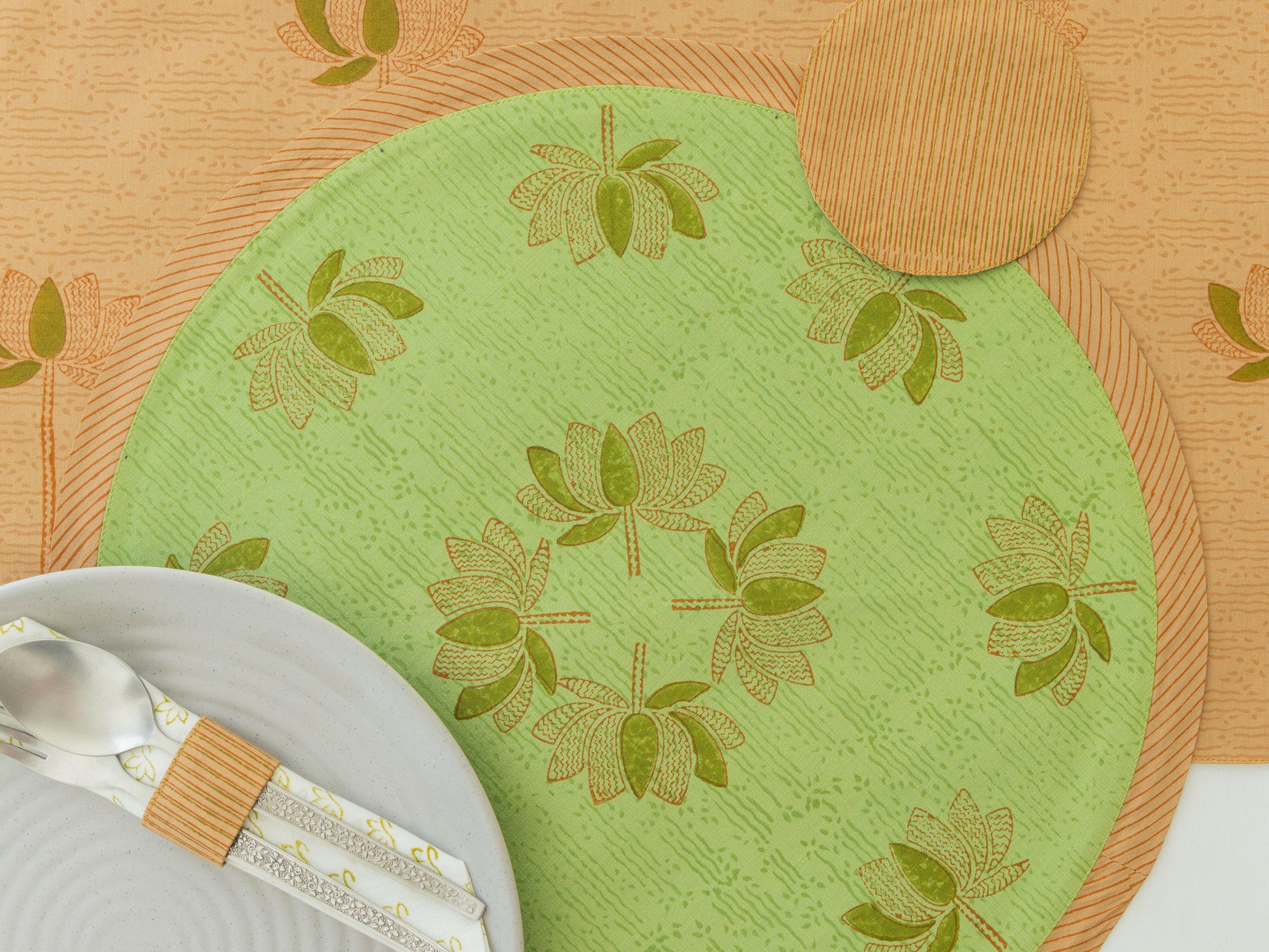 Browse through our collection now & discover the perfect mat set that reflects your unique personality. This Round Green & Golden Lotus Table Set is specially curated to evoke the delight of a perfect dining experience.