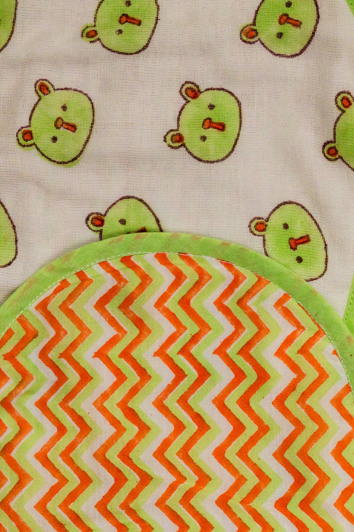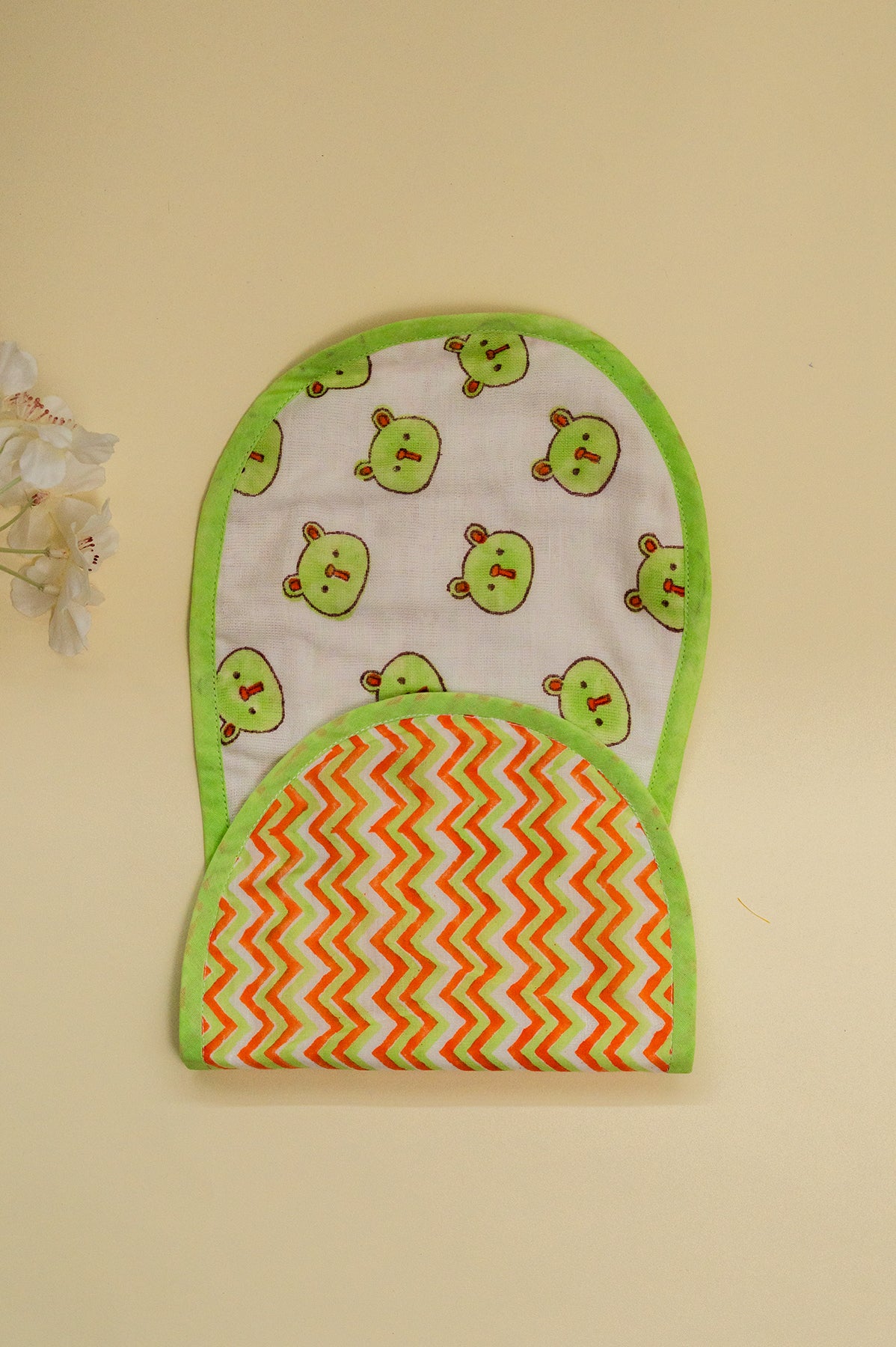 Green Panda Cotton Reversible Burp Cloth- Pack of 2
