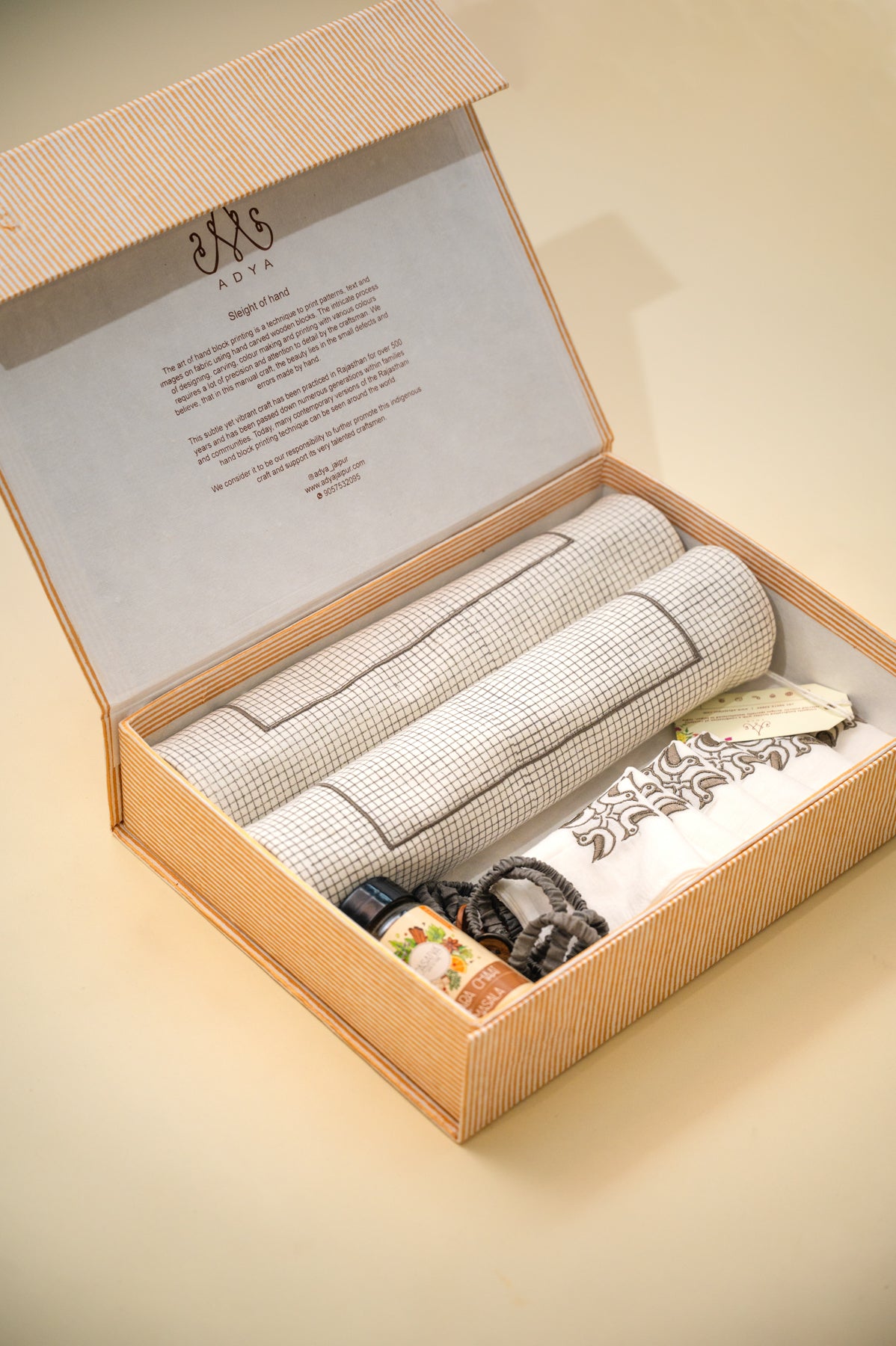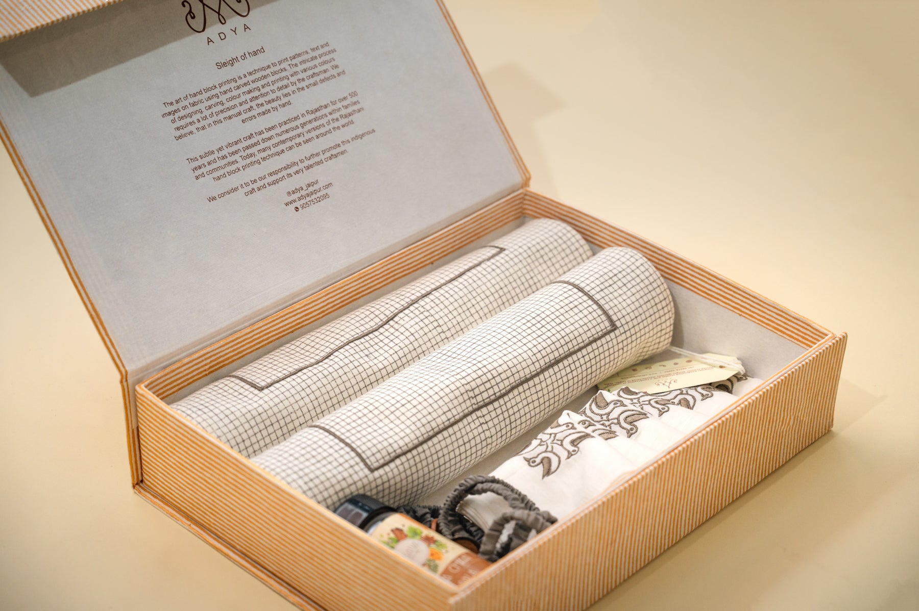 Every Adya product is a masterpiece crafted with utmost care and artistry by our skilled artisans. Embracing the natural variations in prints, color, stitching & embroidery that are an integral part of any handmade process, each item is a one-of-a-kind work of art, embodying the timeless elegance and charm of traditional Indian craftsmanship. These minor differences are not flaws but the hallmarks of true, handmade excellence - adding to the inherent beauty and value of your exquisite Adya purchase.