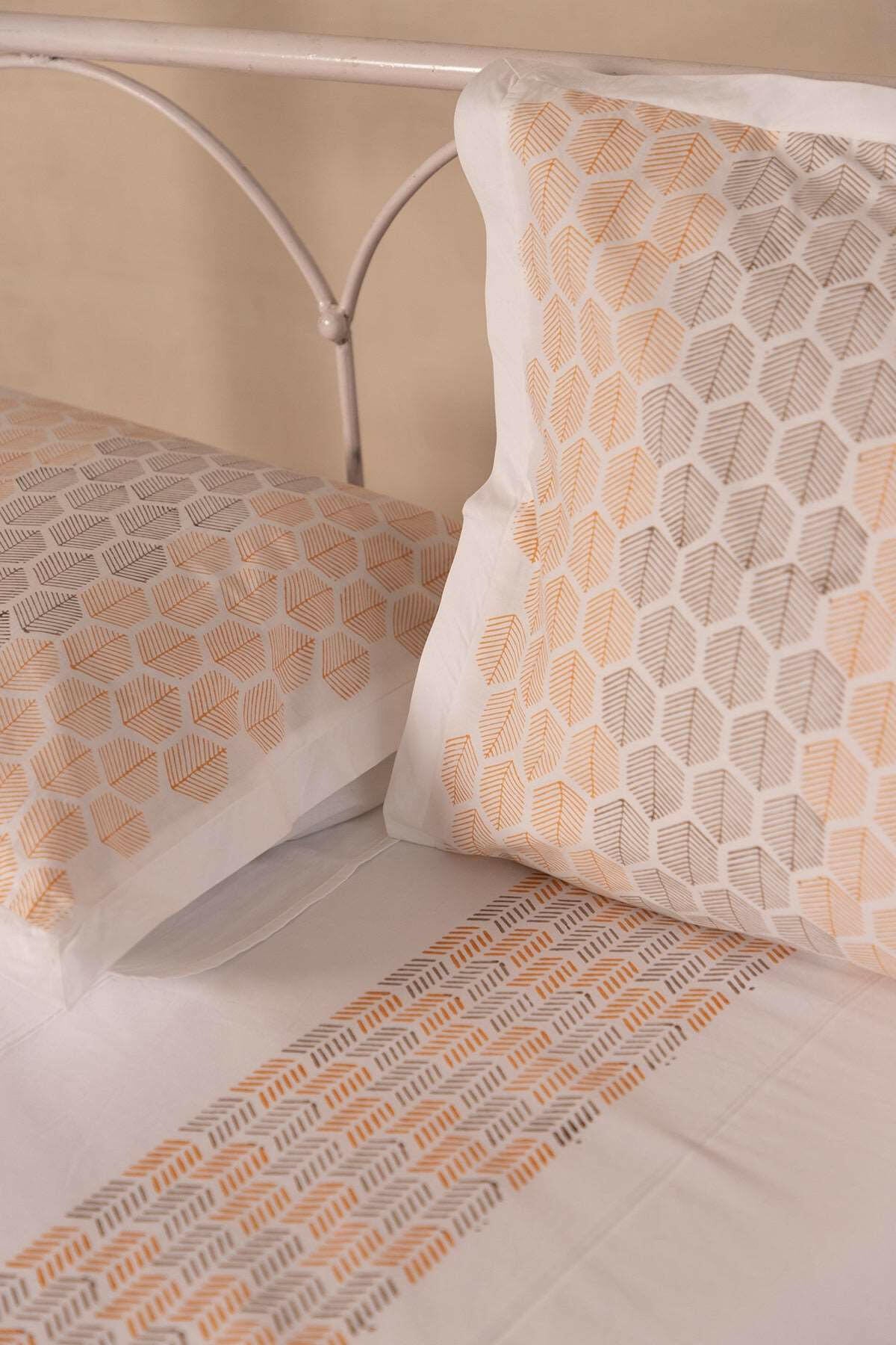 Experience the luxurious comfort of our 100% cotton bed sheet, beautifully hand-block printed with a variety of intricate designs. The bedsheet comes with matching pillow cases (18 IN X 28 IN).