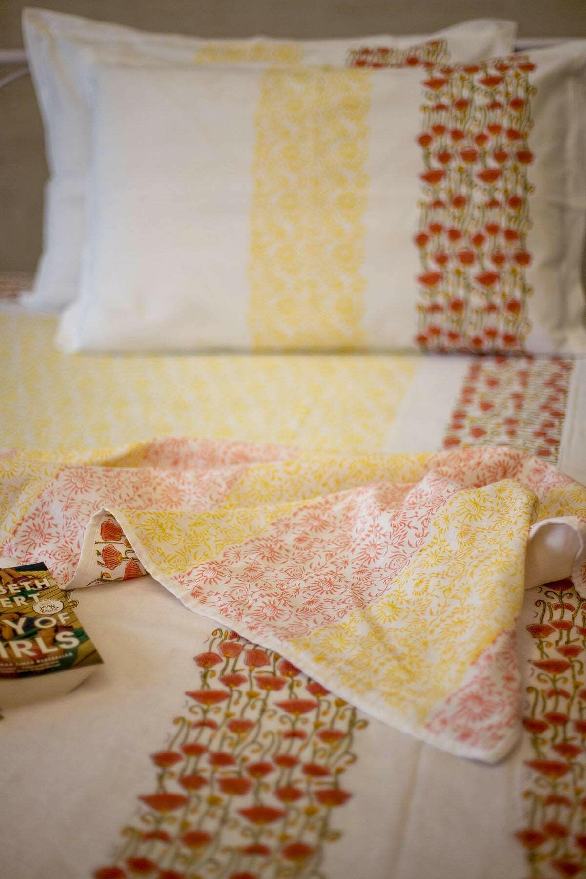 Soft and maintenance free, the double sided muslin dohar hand block printed with intricate poppy flowers is not just for snuggling up. They also serve as a versatile accessory to enhance your home decor. Whether draped over your bed as an eye catching coverlet or spread across your couch as a statement piece, our dohars effortlessly elevate the aesthetic of any space.