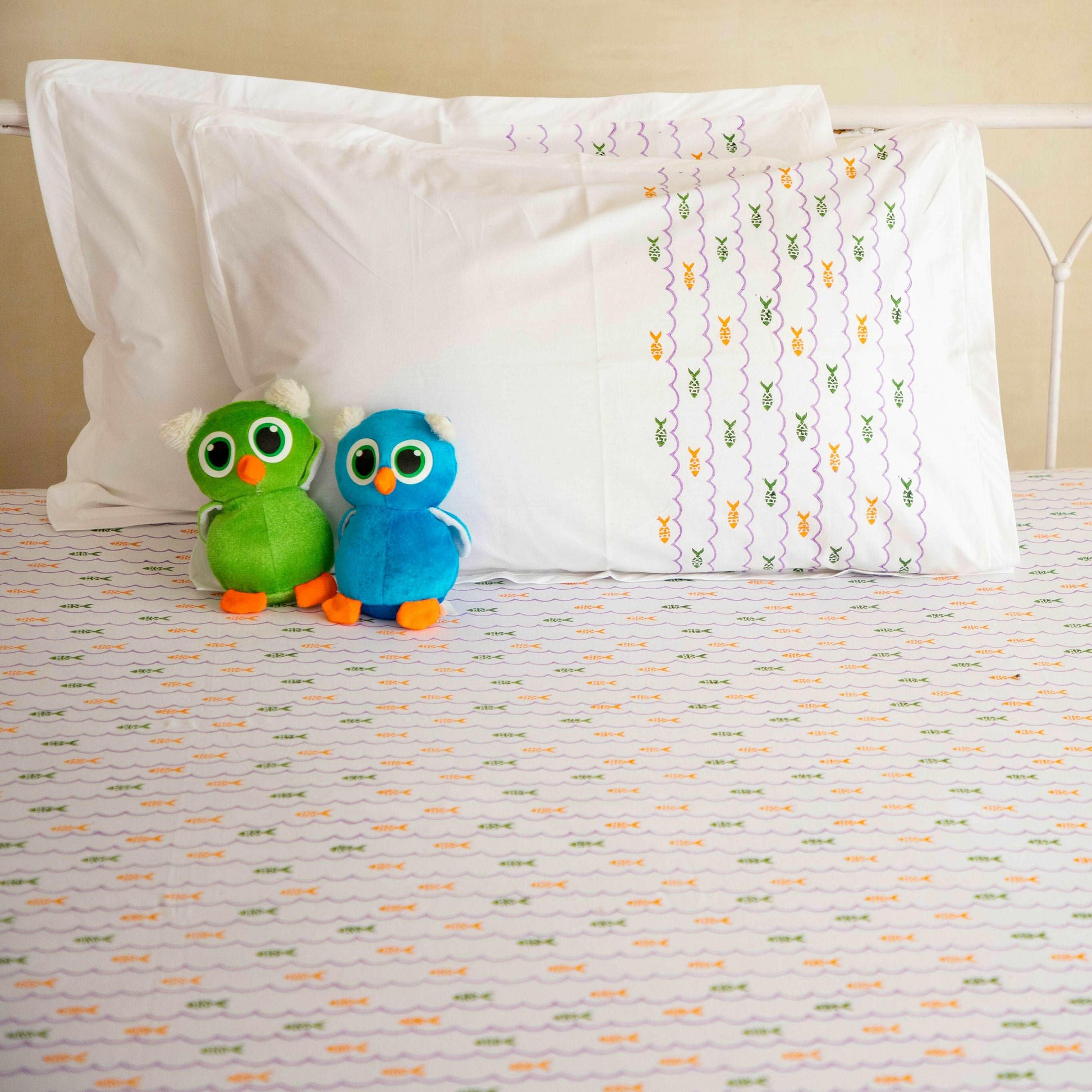 Experience the luxurious comfort of our 100% cotton bed sheet, beautifully hand-block printed with a variety of intricate designs. The bedsheet comes with matching pillow cases (18 IN X 28 IN).