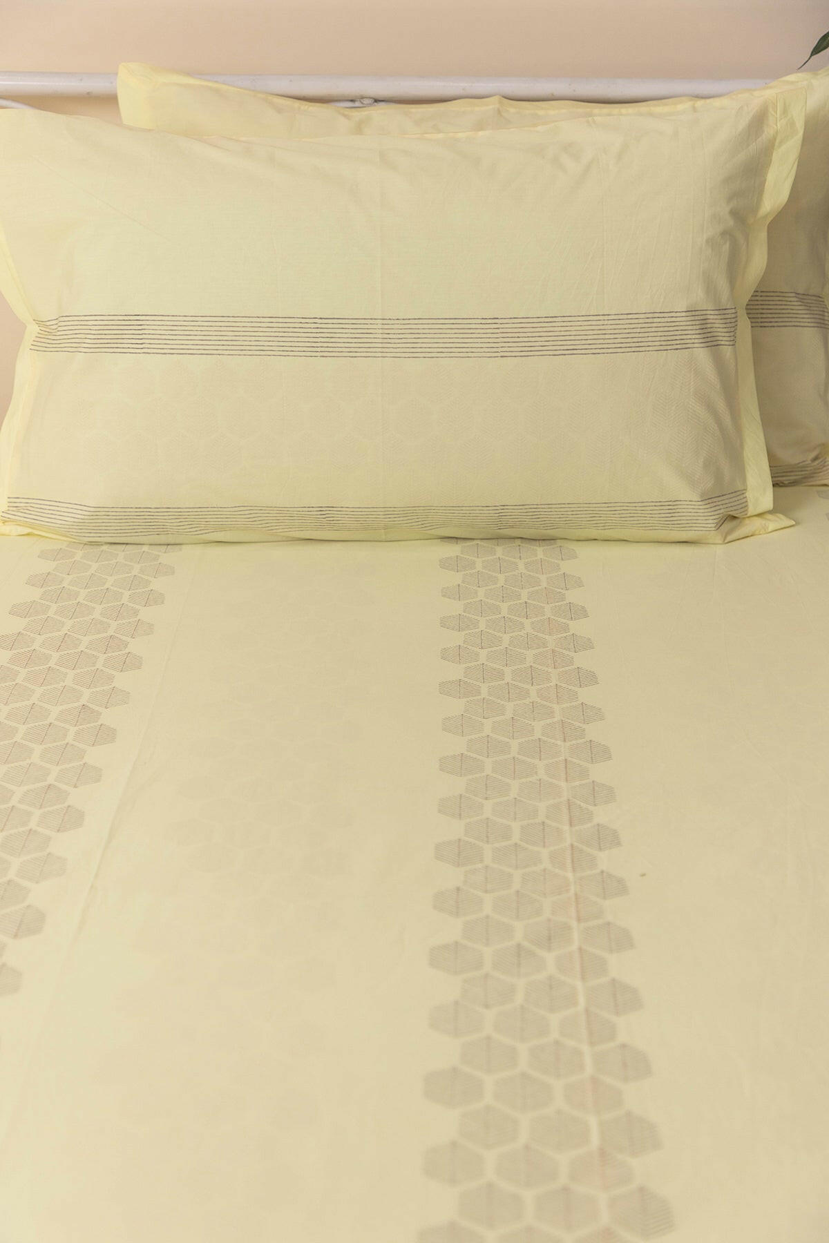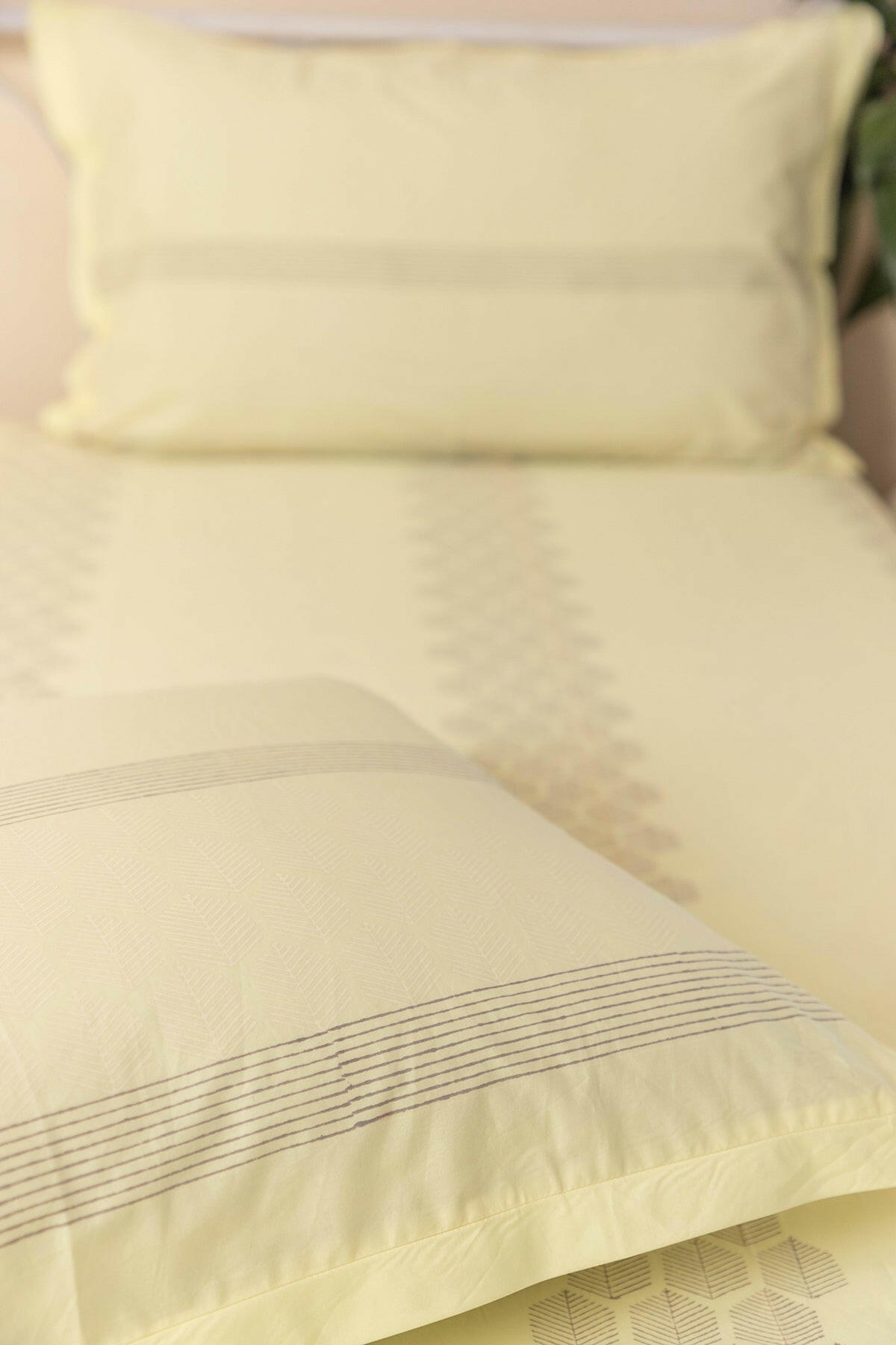 Creamy soft cotton bedcover intricately hand block printed with soothing flowers. Comes with two hand block printed cushion covers.