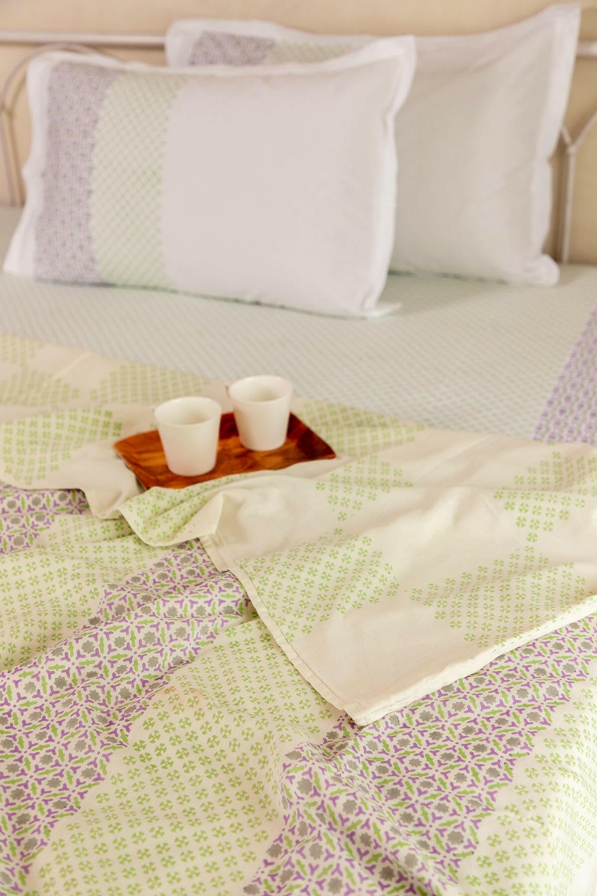 Lilac & Green Polygon Cotton Dohar
