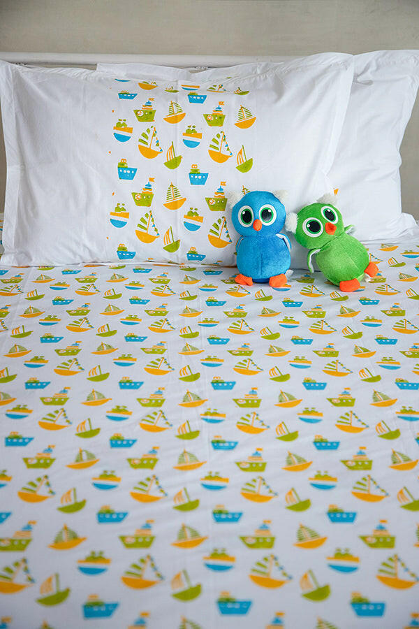 Lime & Blue Ship Kids Bedsheet