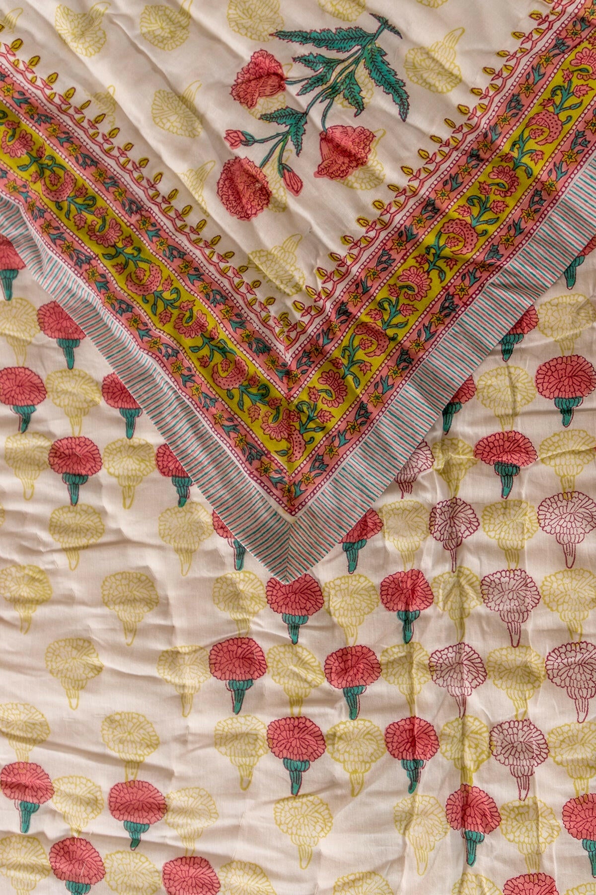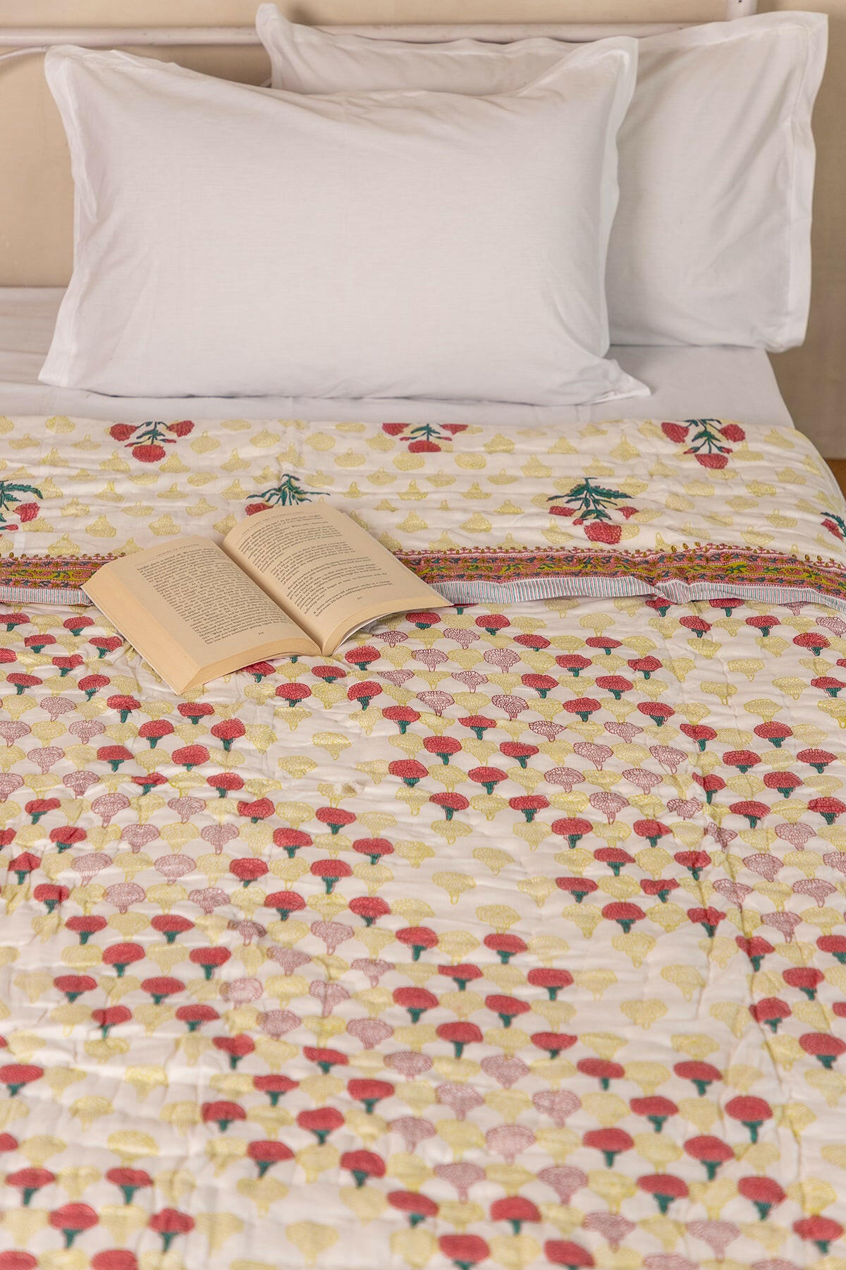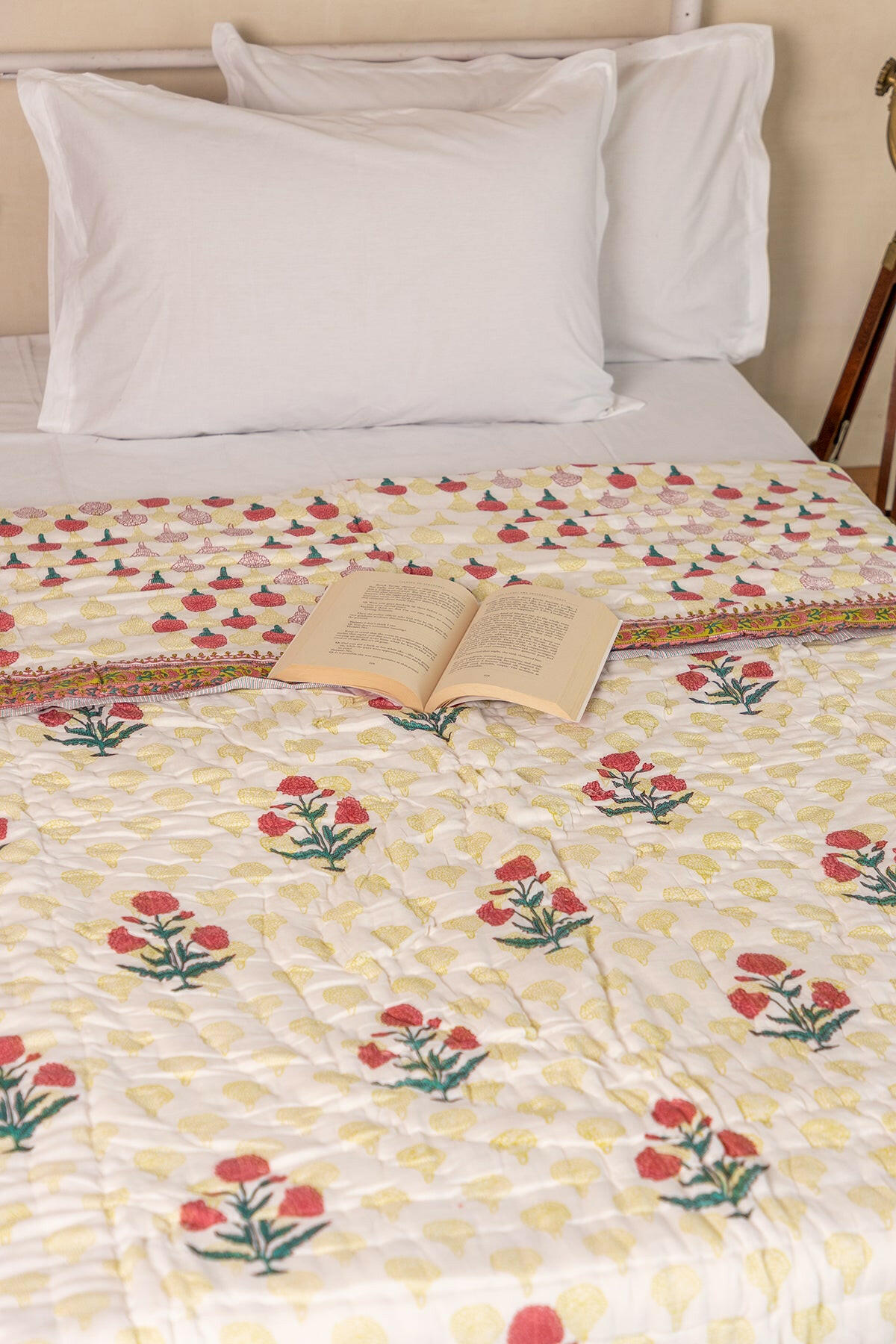 Wrap yourself in the comfort and elegance of our handcrafted Cotton Hand Block Printed Quilt/Razai. Made with love and meticulous attention to detail, this traditional Indian quilt is an epitome of luxury and craftsmanship.