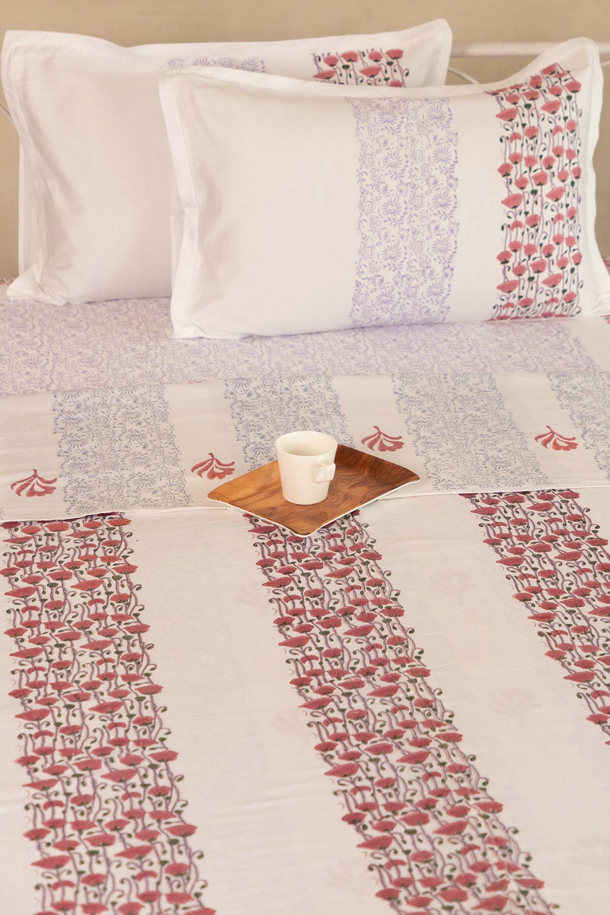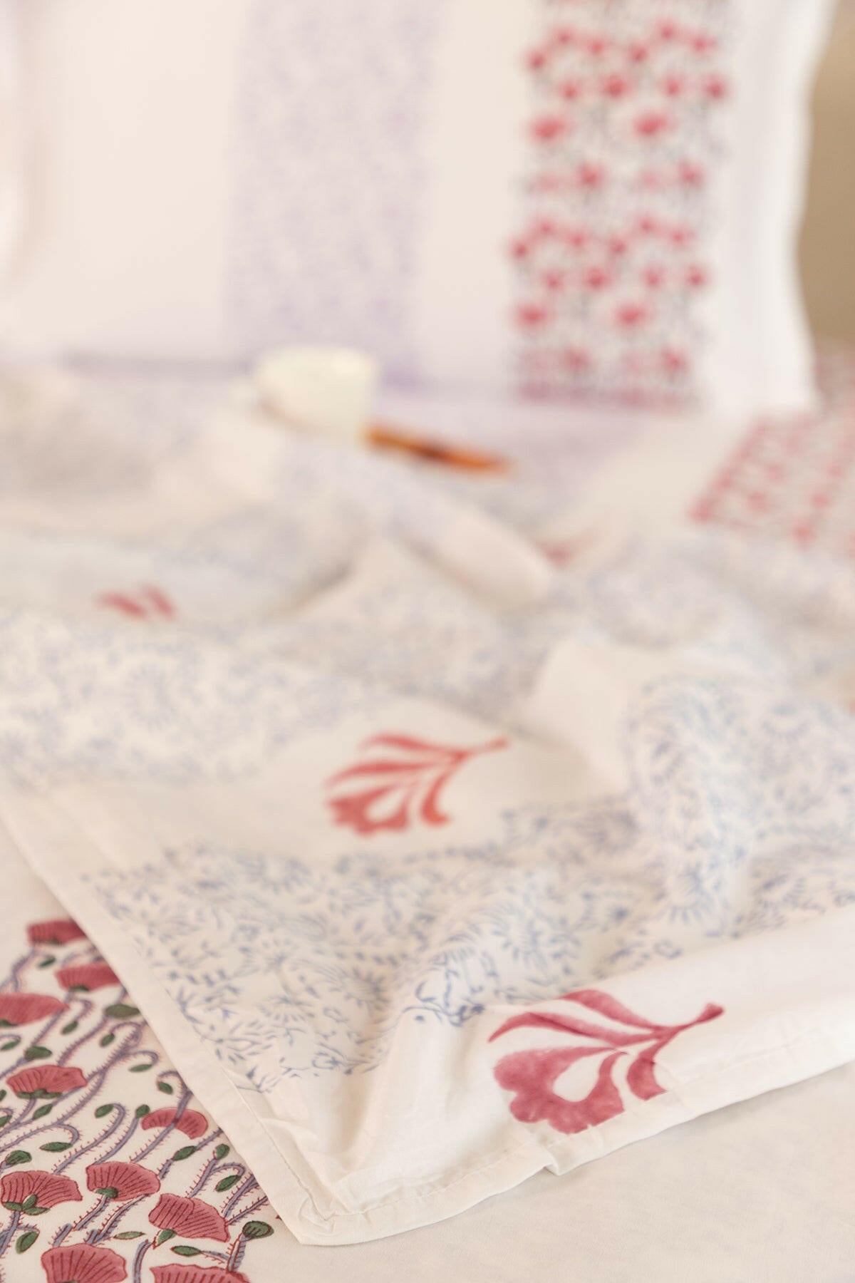 Soft and maintenance free, the double sided muslin dohar hand block printed with gorgeous poppy flowers is not just for snuggling up. They also serve as a versatile accessory to enhance your home decor. Whether draped over your bed as an eye catching coverlet or spread across your couch as a statement piece, our dohars effortlessly elevate the aesthetic of any space.