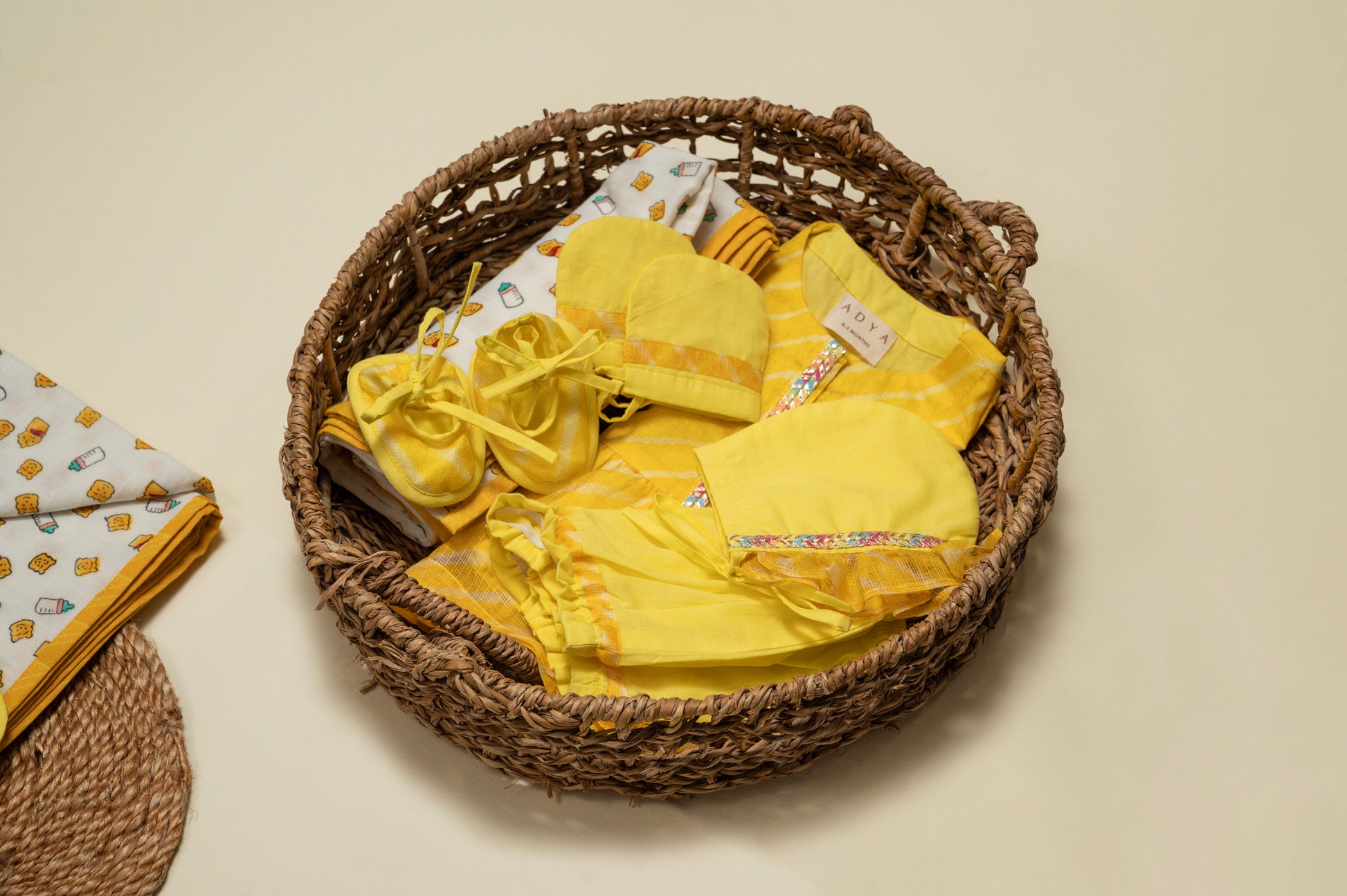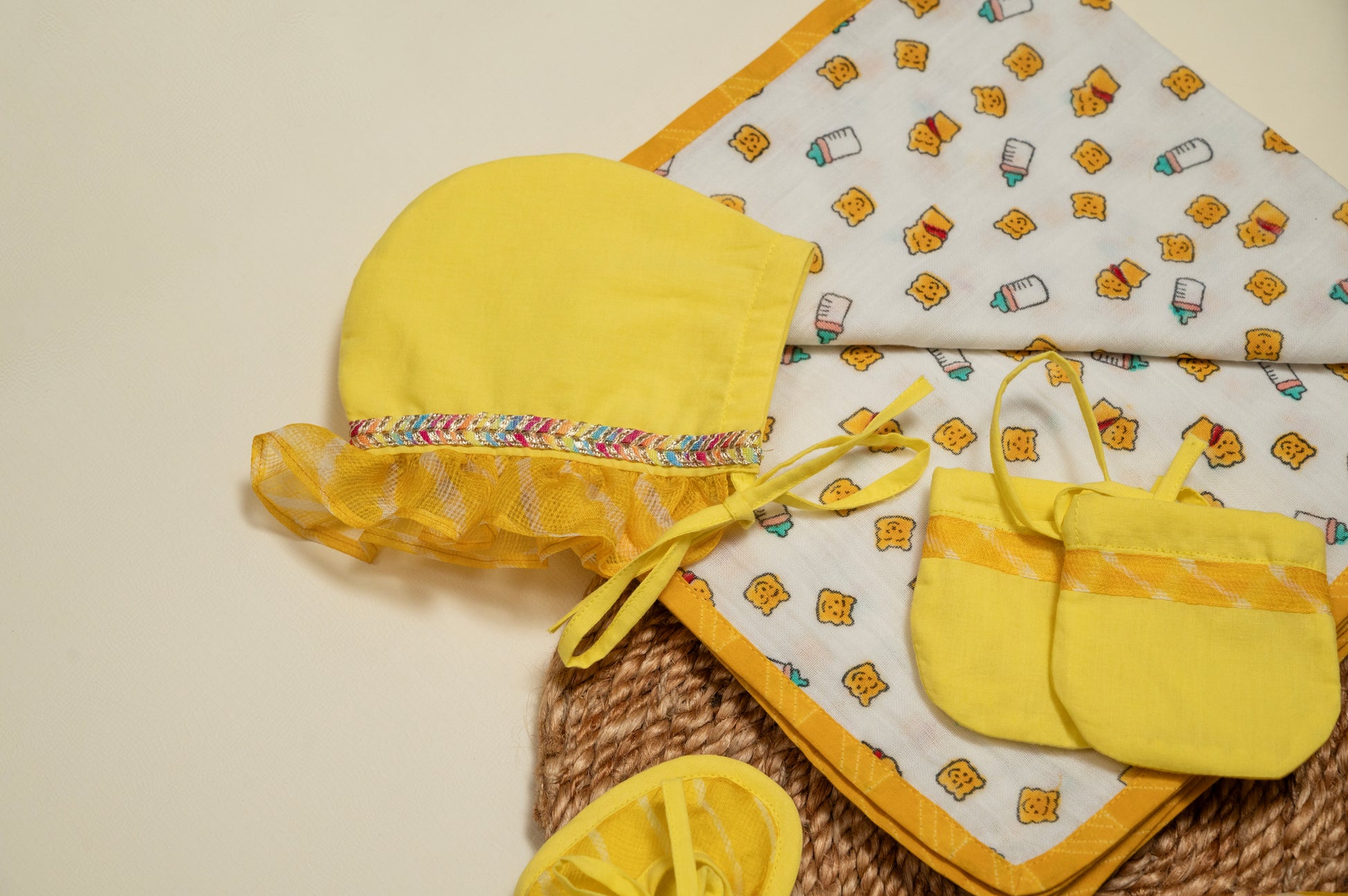 Welcome your little one with our charming Newborn Jamna Set, designed for comfort and style. Crafted from soft, breathable cotton fabric, this set includes:
