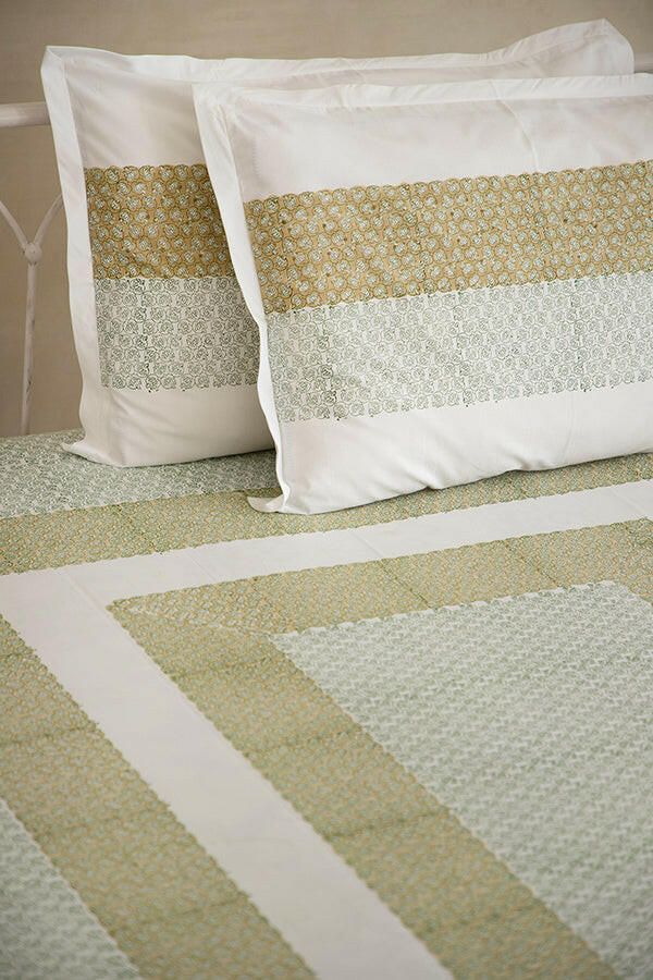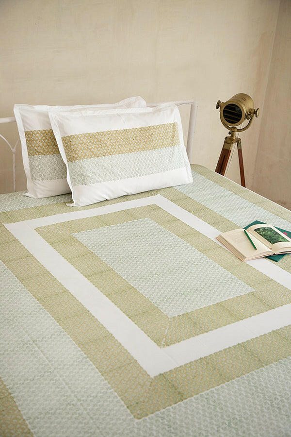 Olive Green Water Lotus Pure Cotton Bedsheet