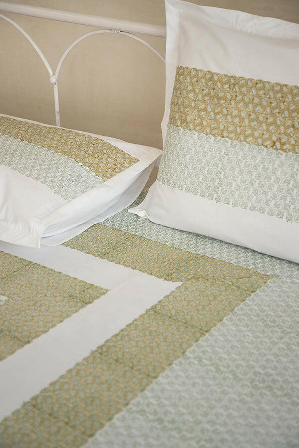 Experience the luxurious comfort of our 100% cotton bed sheet, beautifully hand-block printed with a variety of intricate designs. The bedsheet comes with matching pillow cases (18 IN X 28 IN).