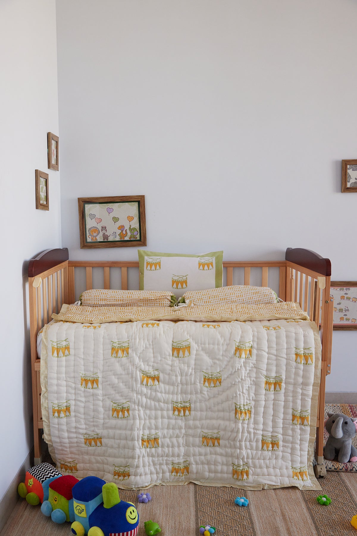 Embrace the magic of new beginnings with a touch of artistry and love. Envelop your little one in the cozy comfort of our hand-block printed soft quilt, crafted to bring joy and warmth.