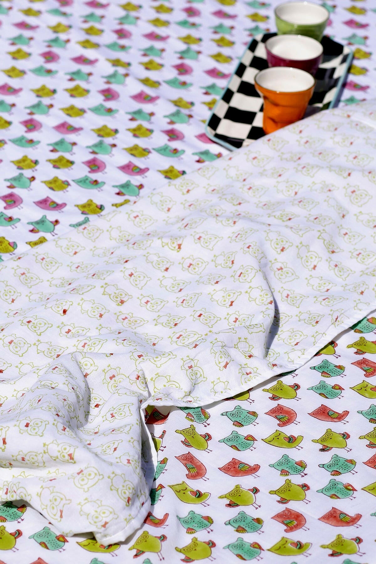 Browse through our delightful collection of double sided Kids Block Print Dohars and discover the perfect addition to your child's room. Wrap your little one in the warmth of our lovingly crafted owl print dohars and let their dreams take flight.