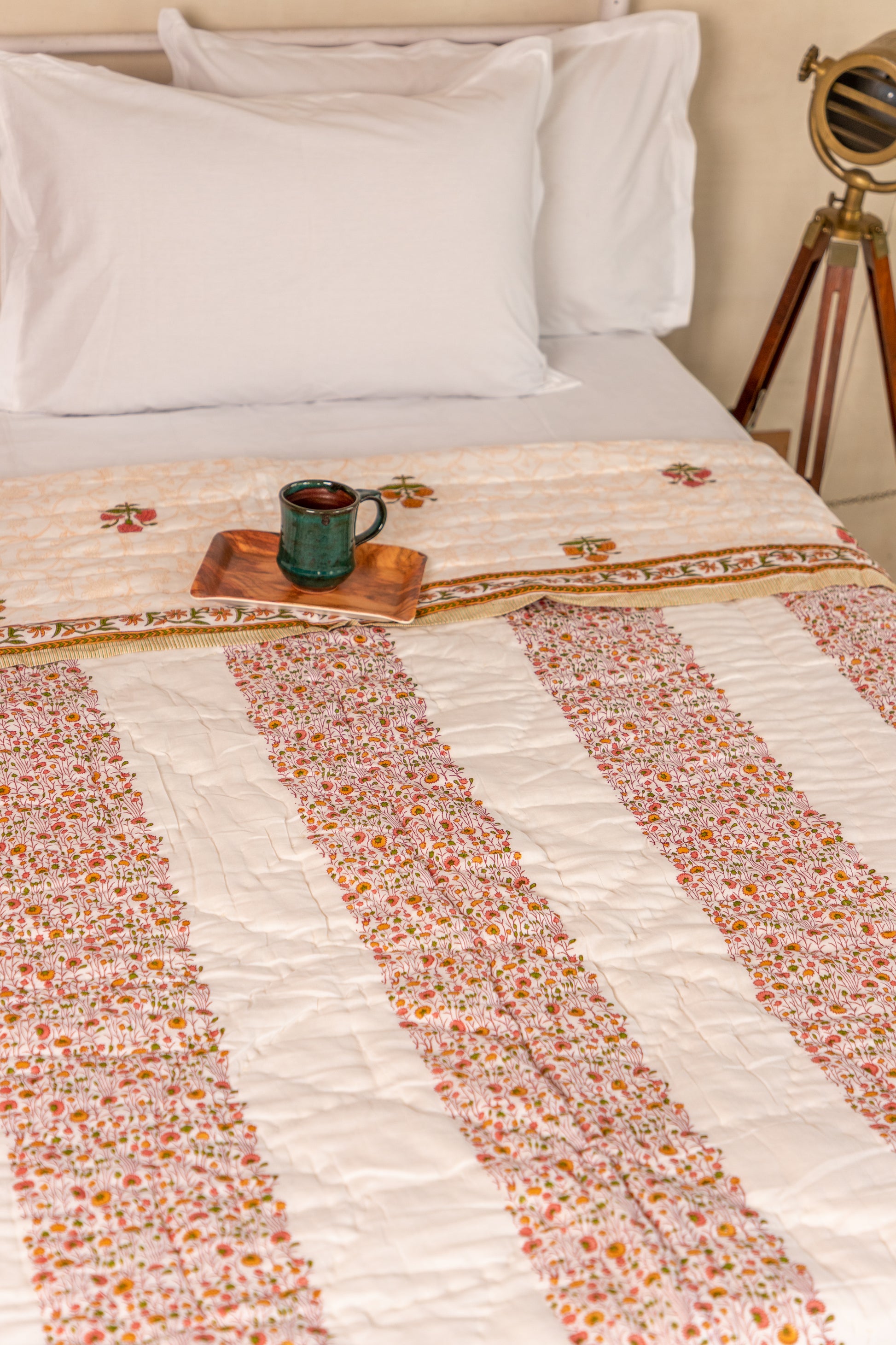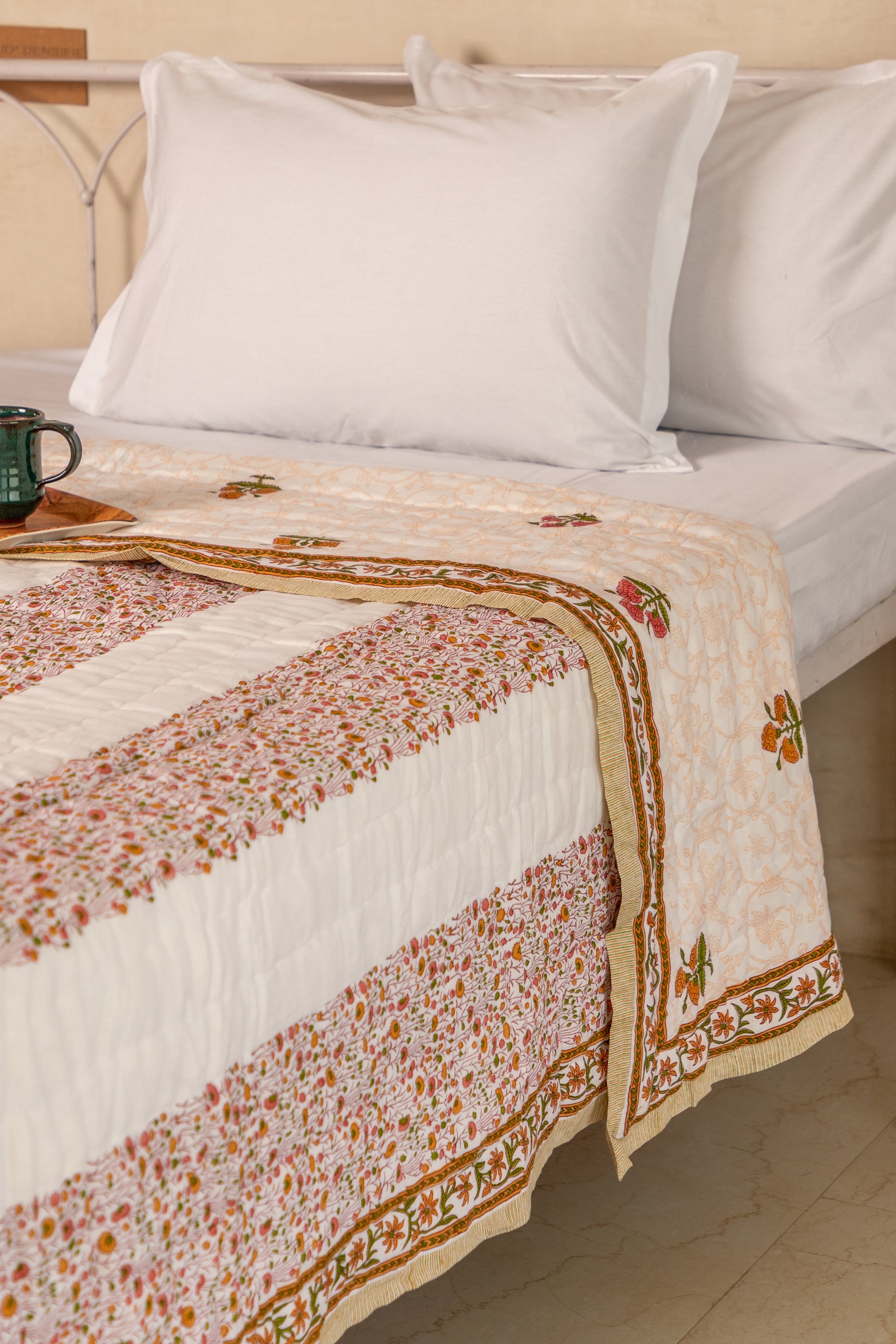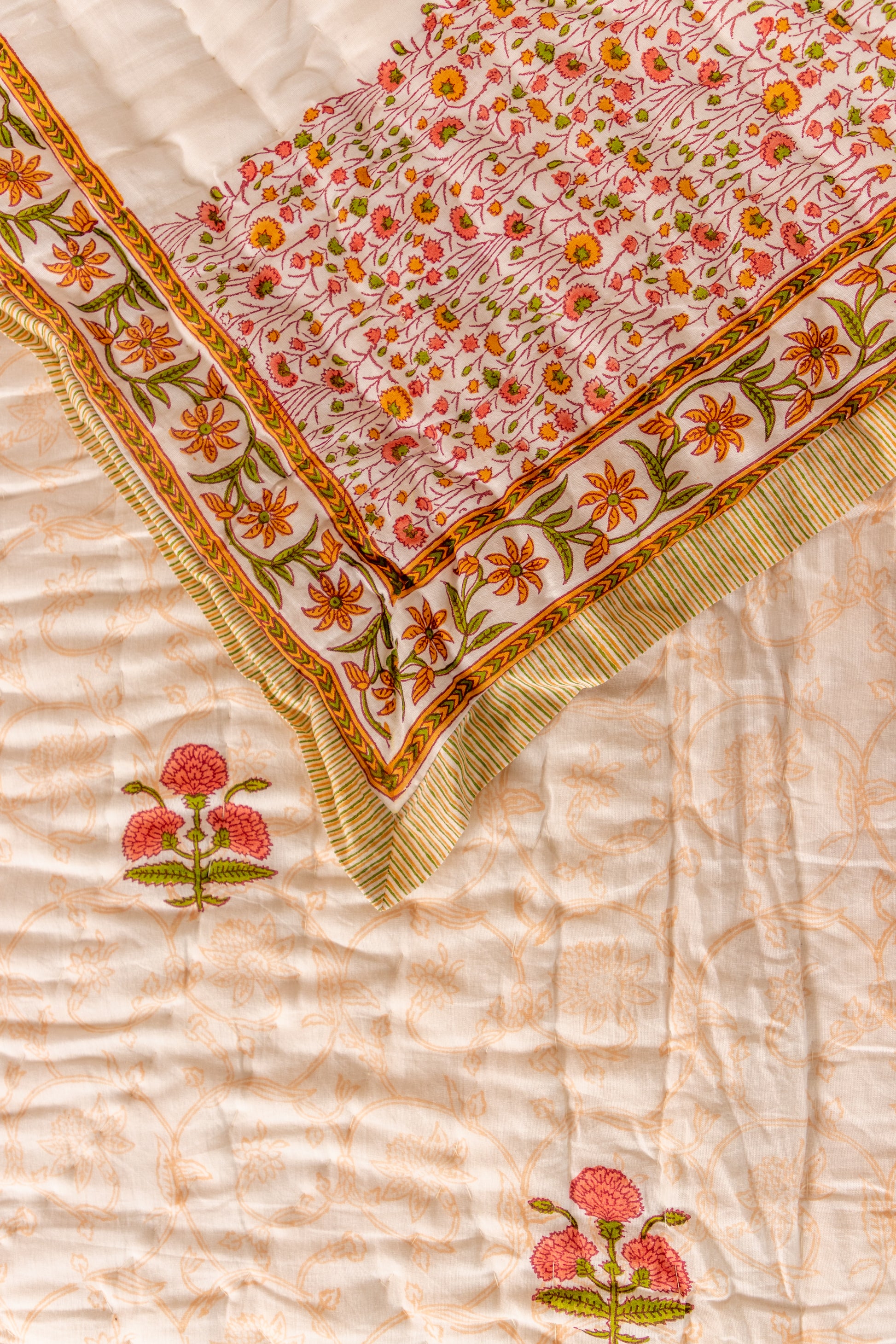 Wrap yourself in the comfort and elegance of our handcrafted Cotton Hand Block Printed Quilt/Razai. Made with love and meticulous attention to detail, this traditional Indian quilt is an epitome of luxury and craftsmanship.