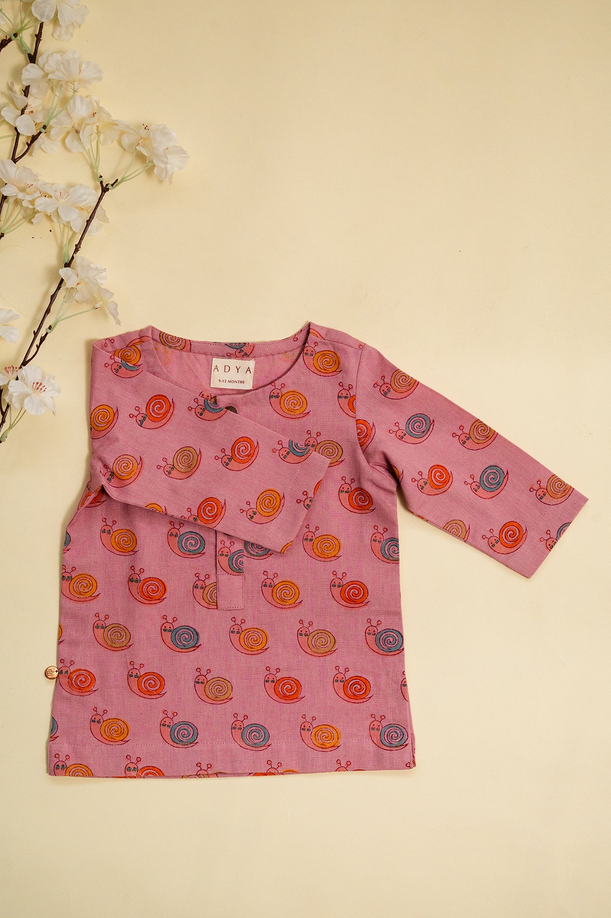 Pink Snail Block Print Kurta Set