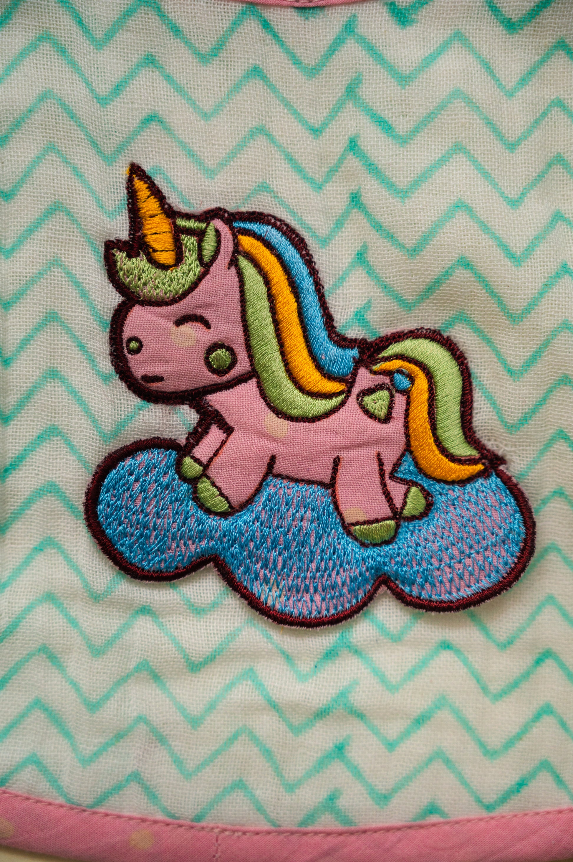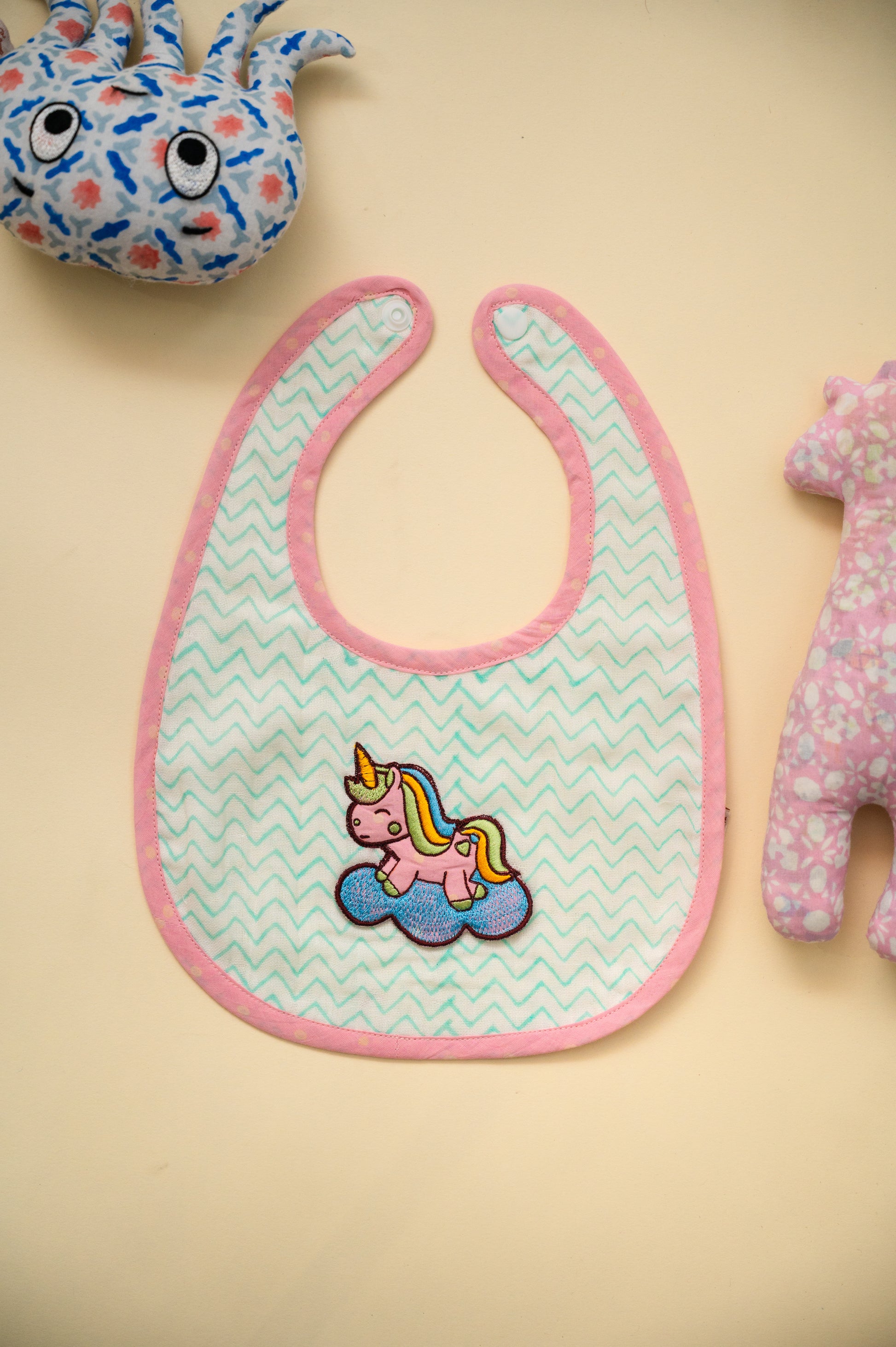 Pink Unicorn Embroidered Cotton Reversible Bib - Pack of 2