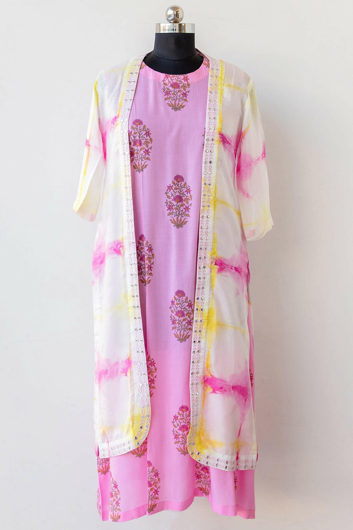 This layered Hand Block Printed Kurta in rich silk consists of a soft cotton inner. The shaded hues and natural fabrics make it perfect for all weathers and occasions.