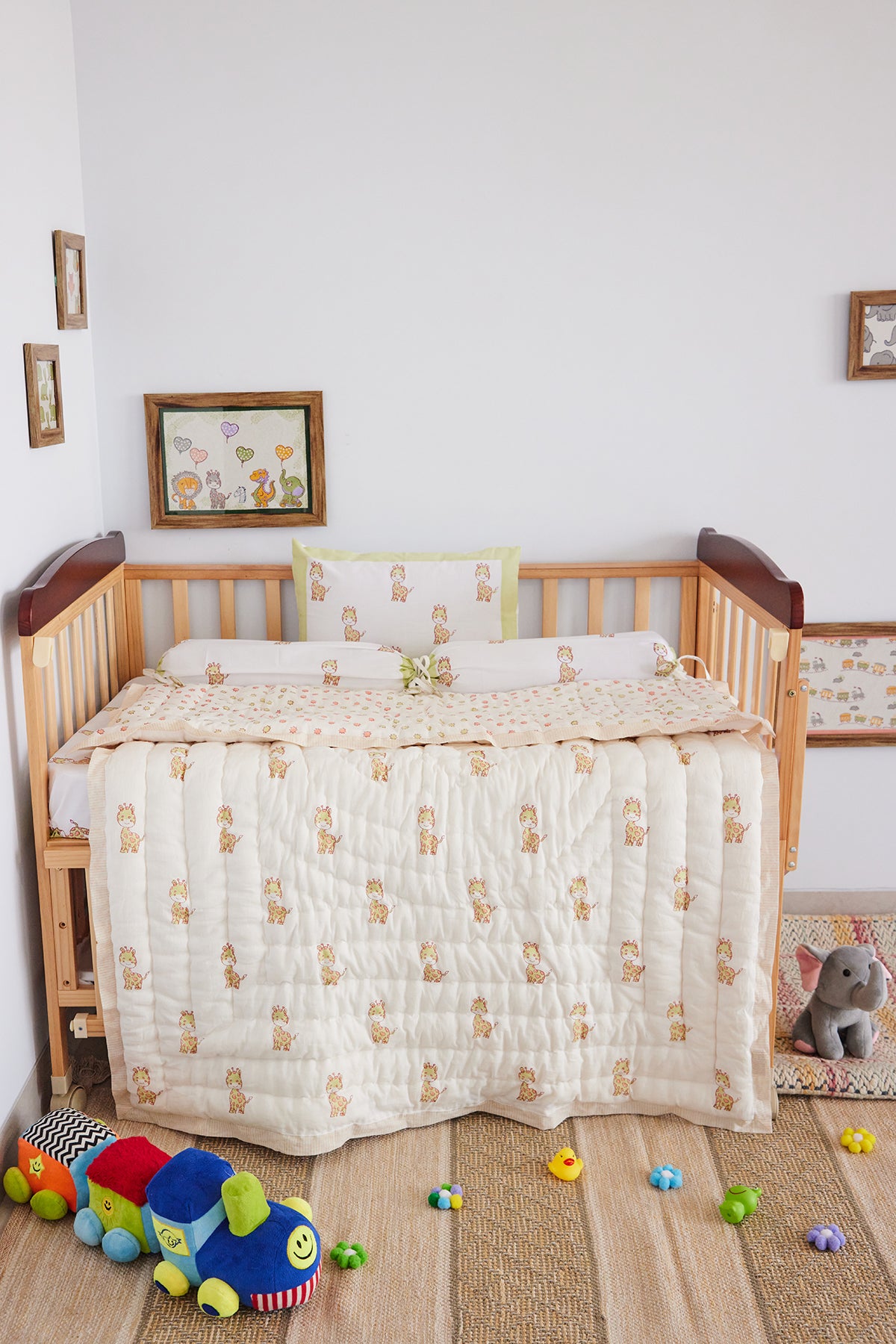 Embrace the magic of new beginnings with a touch of artistry and love. Envelop your little one in the cozy comfort of our hand-block printed soft quilt, crafted to bring joy and warmth.