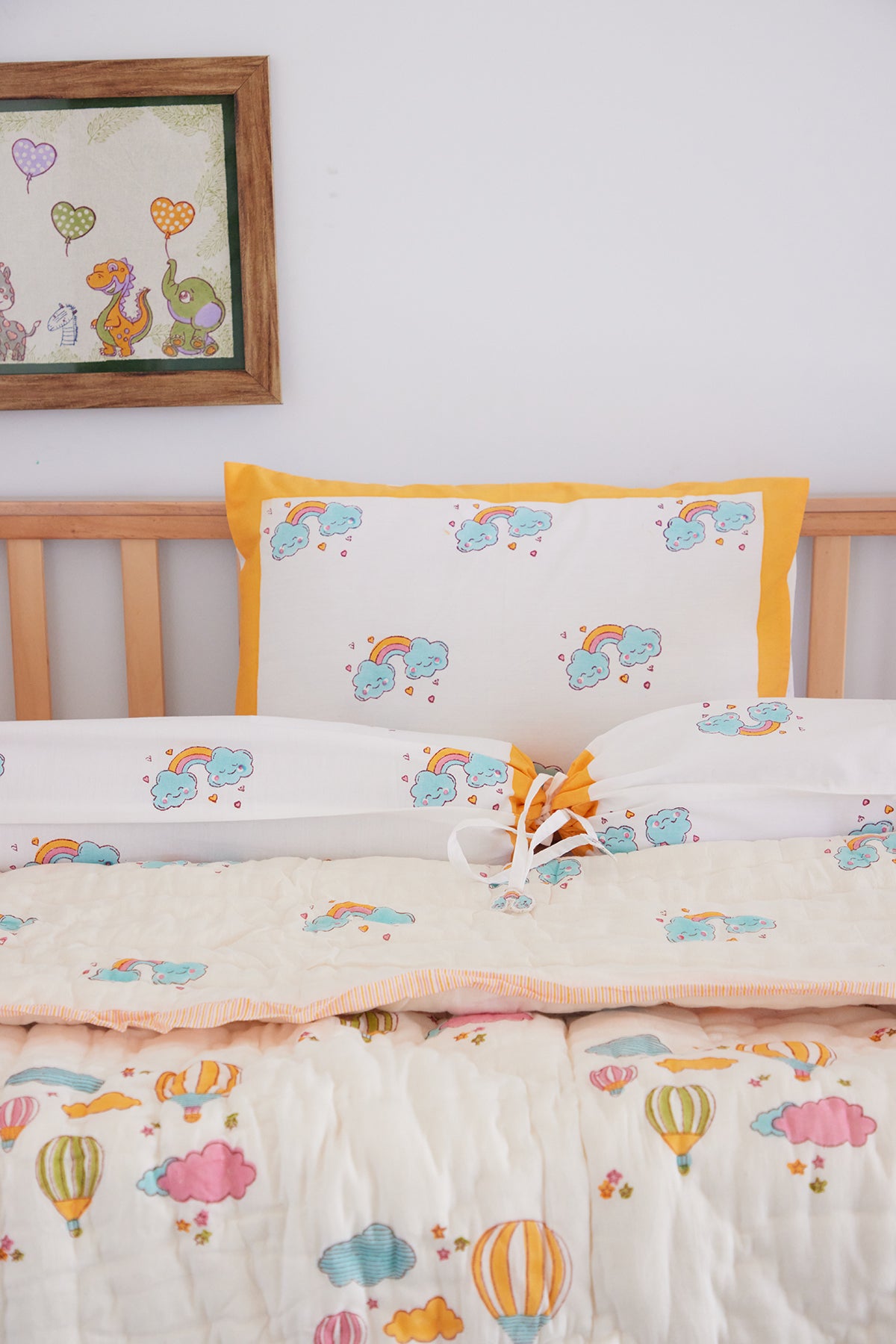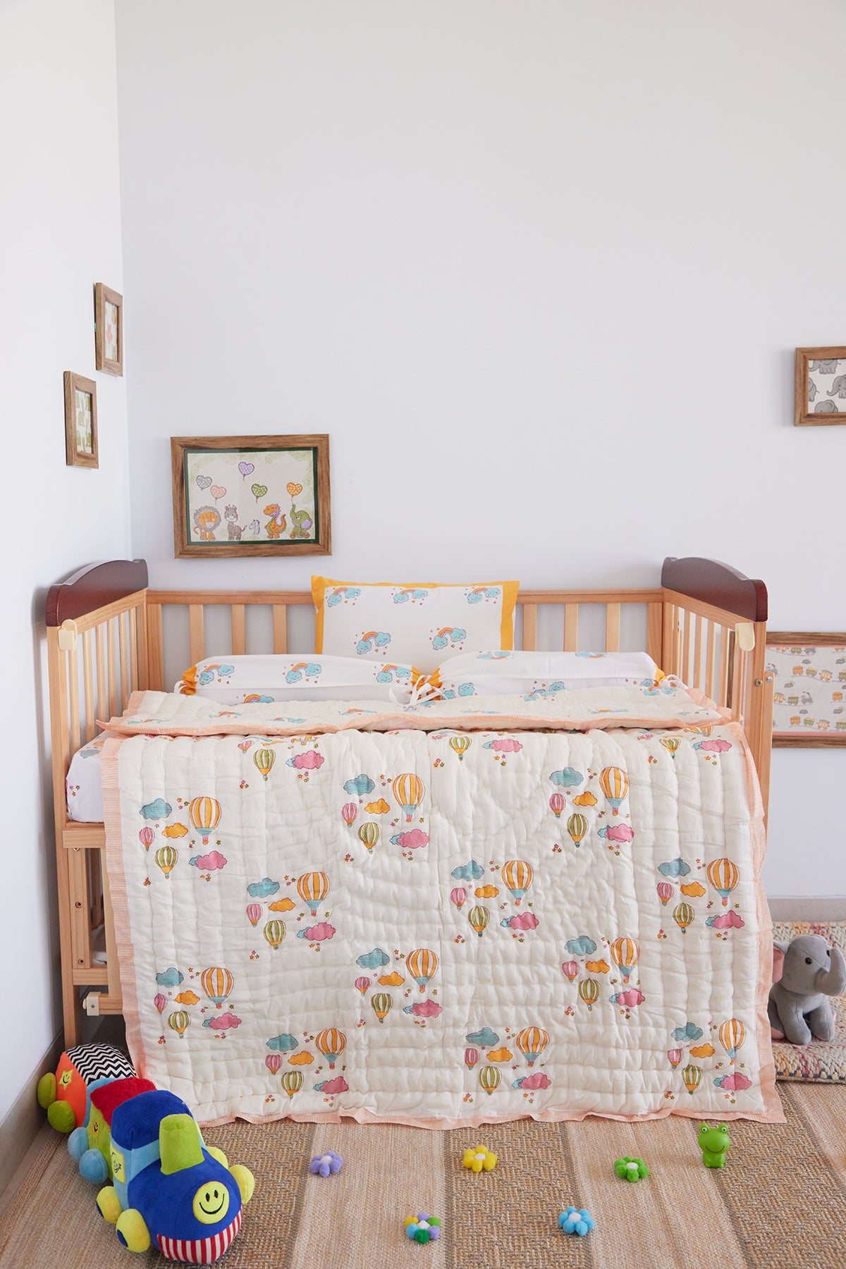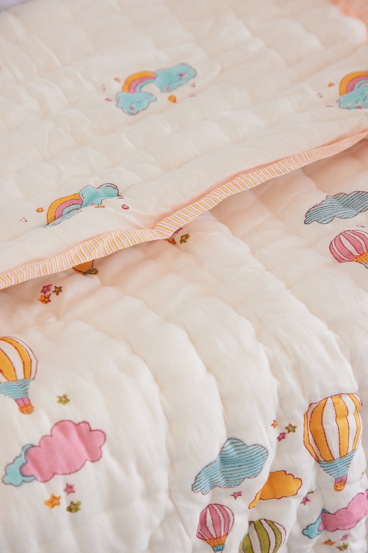 Embrace the magic of new beginnings with a touch of artistry and love. Envelop your little one in the cozy comfort of our hand-block printed soft quilt, crafted to bring joy and warmth.