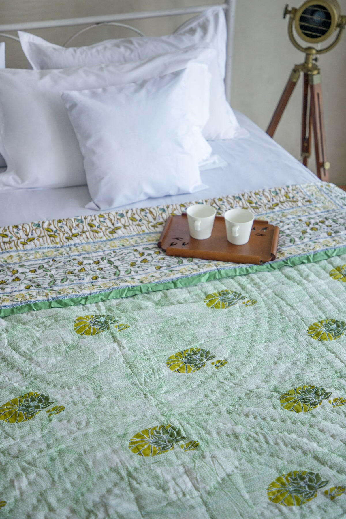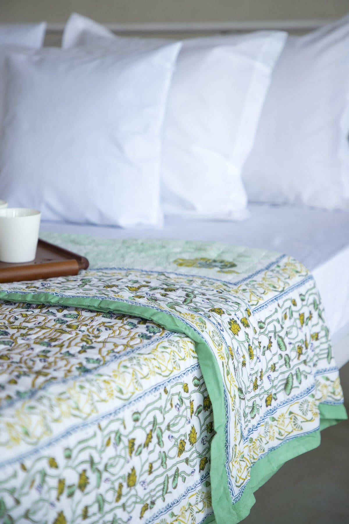 Wrap yourself in the comfort and elegance of our handcrafted Cotton Hand Block Printed Quilt/Razai. Made with love and meticulous attention to detail, this traditional Indian quilt is an epitome of luxury and craftsmanship.