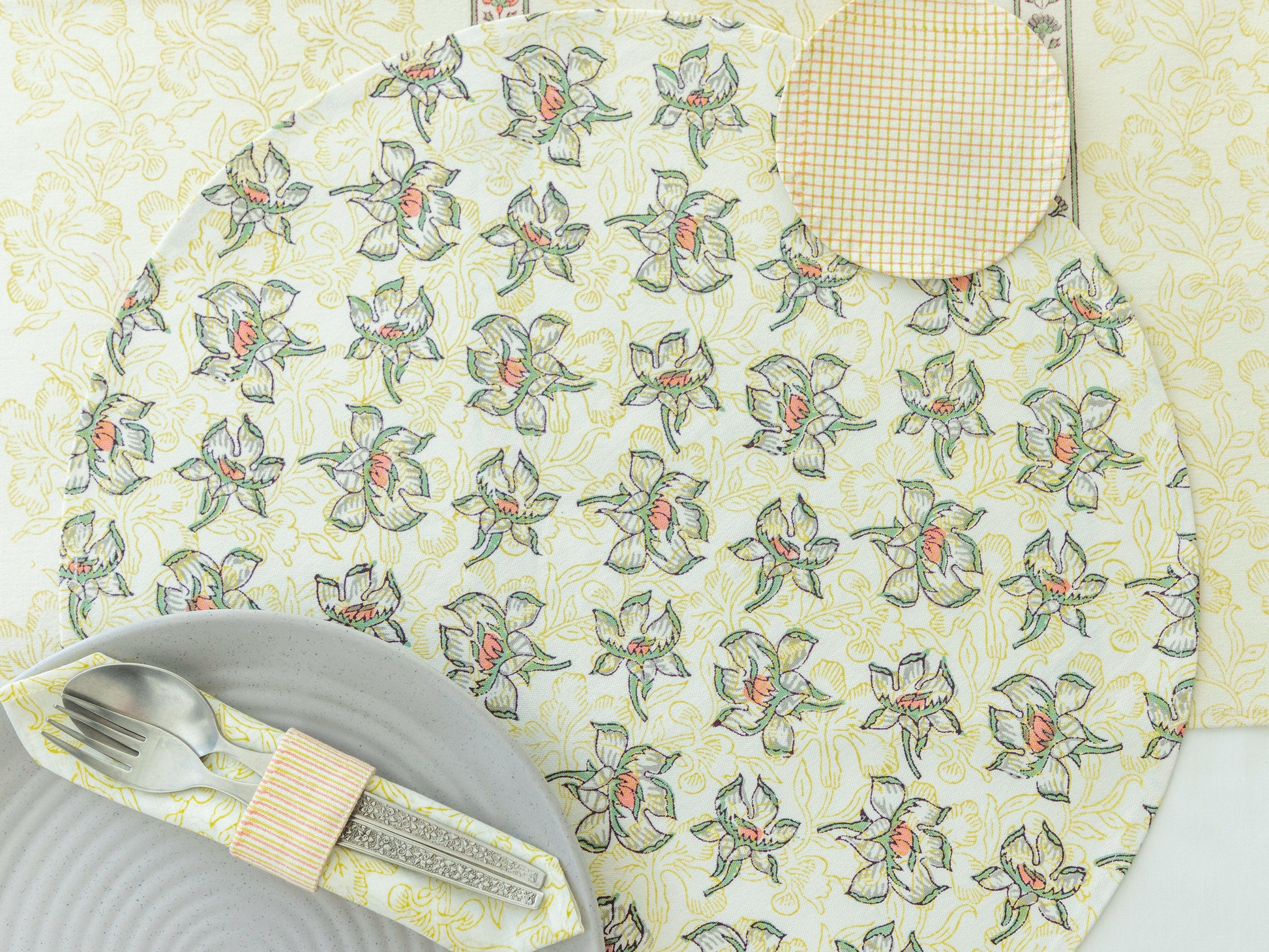 Browse through our collection now & discover the perfect mat set that reflects your unique personality. This Round Lily WingTable Set is specially curated to evoke the delight of a perfect dining experience.