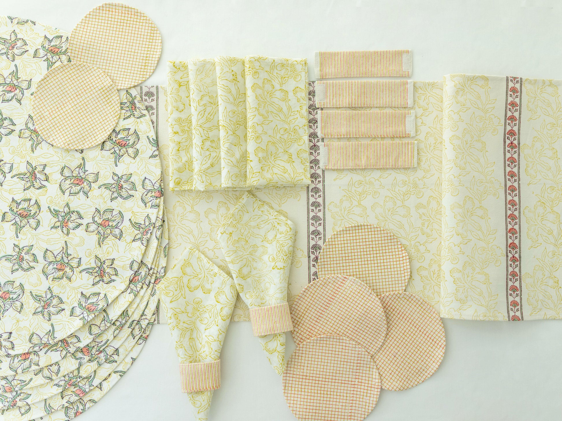 Contents: 1 Runner 6 Table Mats, 6 Napkins with 6 Rings & 6 Coasters